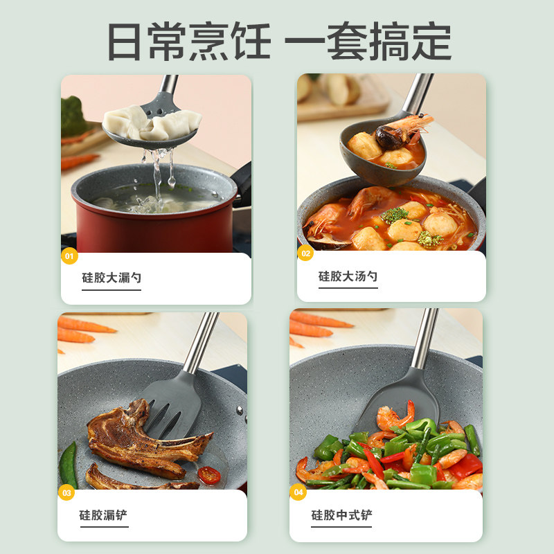 爱仕达硅胶铲耐高温不粘锅专用食品级锅铲炒菜铲子平铲漏勺大汤勺