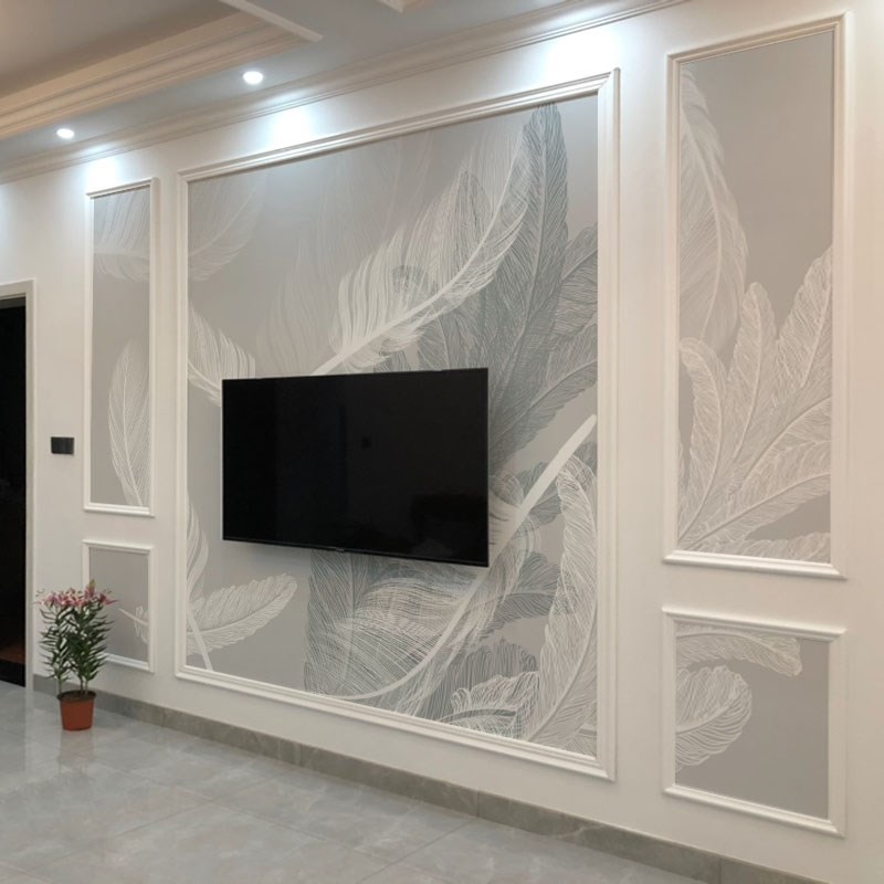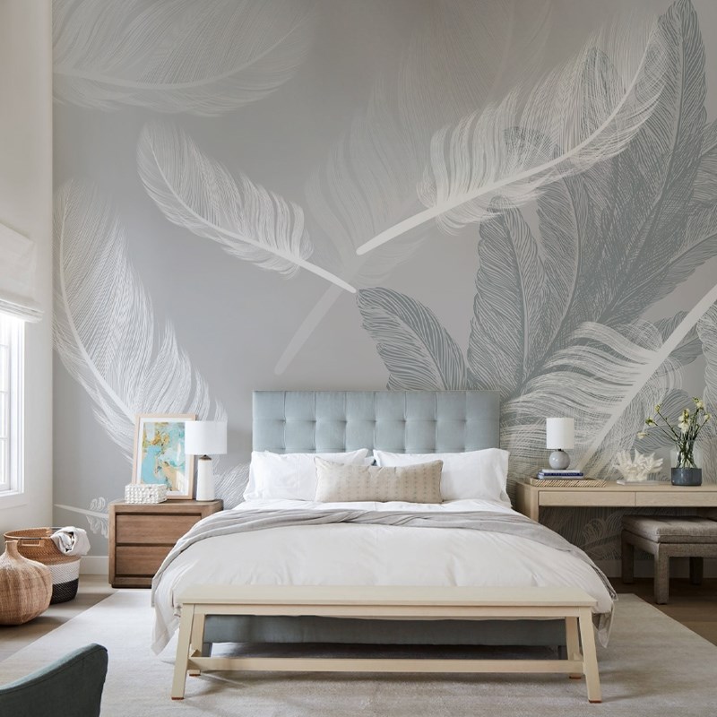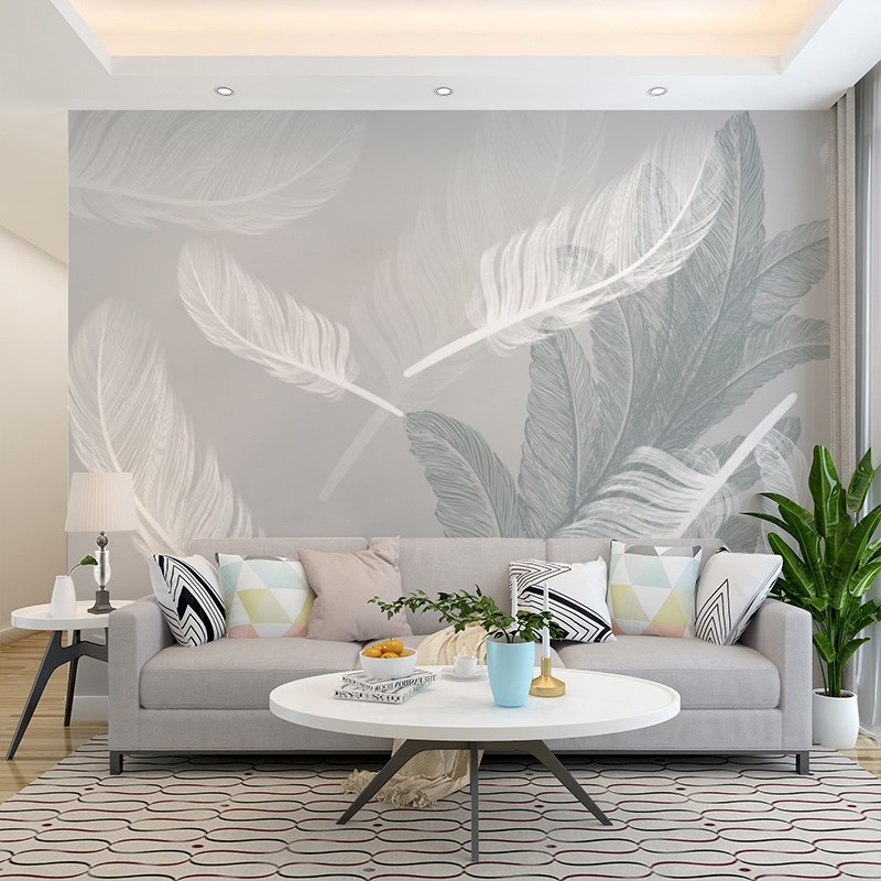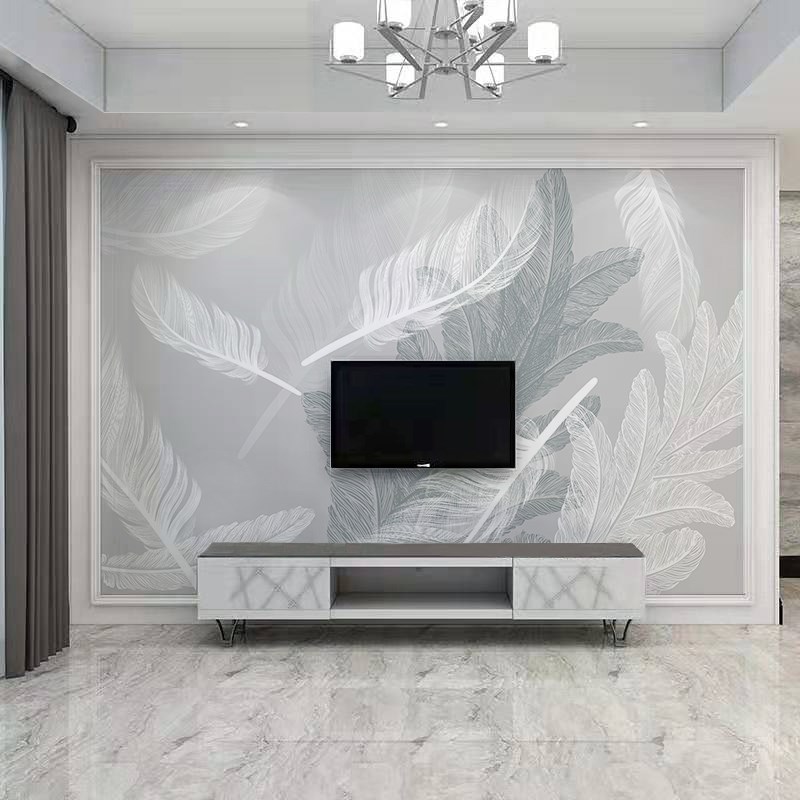 电视背景墙壁纸客厅卧室墙布壁布羽毛定制壁画影视墙简约网红墙纸