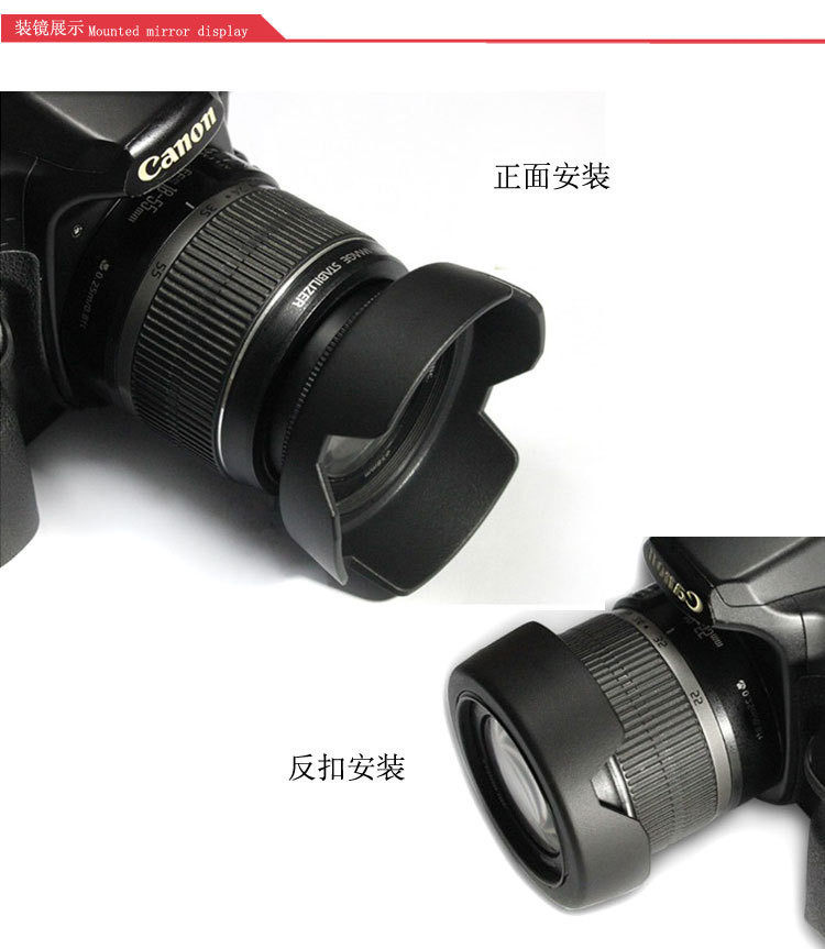 佳能EOS 450D 600D 1200D单反相机配件18-55mm遮光罩+镜头盖+UV镜