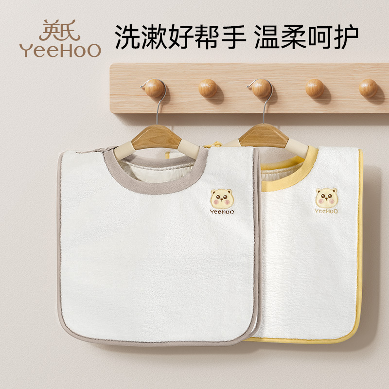 英氏儿童洗漱巾围兜四季不湿衣多功能防水巾刷牙洗脸毛巾漱口巾