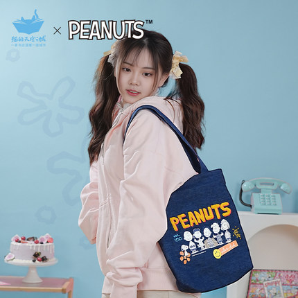 猫的天空之城史努比好事花生单肩包女学生牛仔帆布大容量通勤百搭