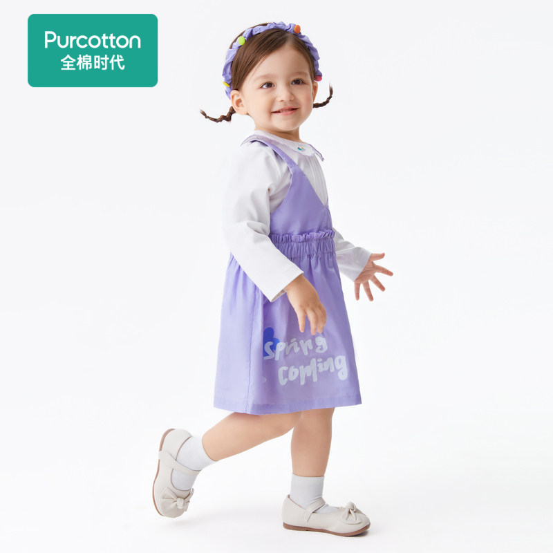 全棉时代童装100%全棉液氨连衣裙女中大童v领背带裙子两件套套装