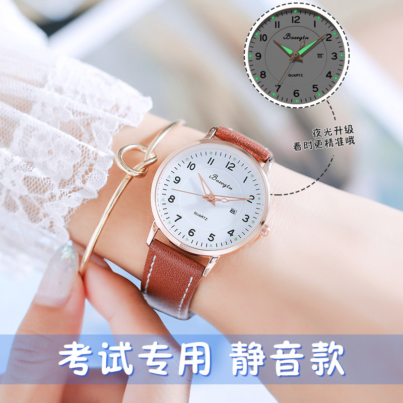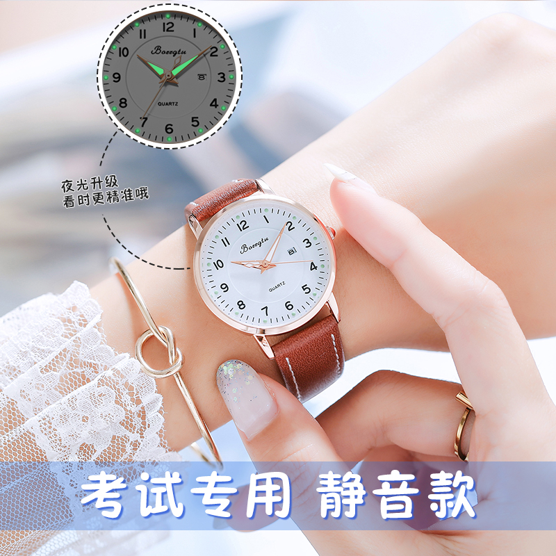手表女ins风防水简约数字韩版学生小清新初高中学院风静音考试用