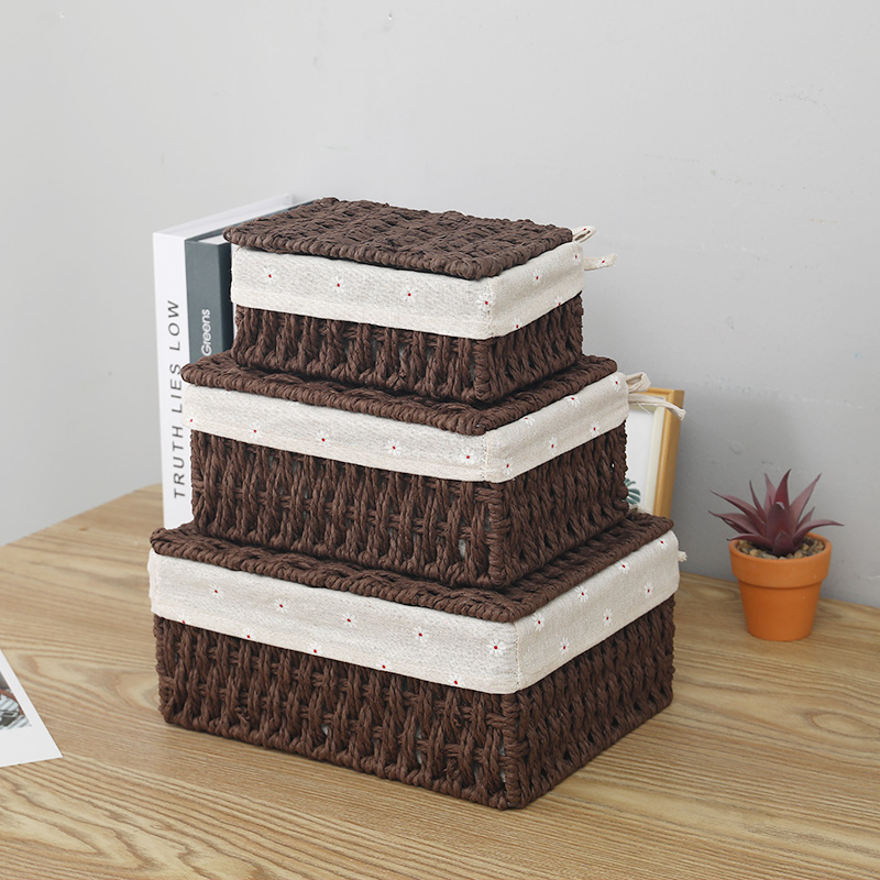 桌面收纳盒带盖家用杂物藤编收纳筐宿舍发饰收纳盒面膜口罩收纳篮