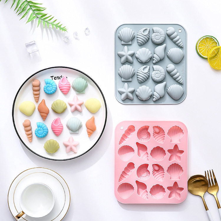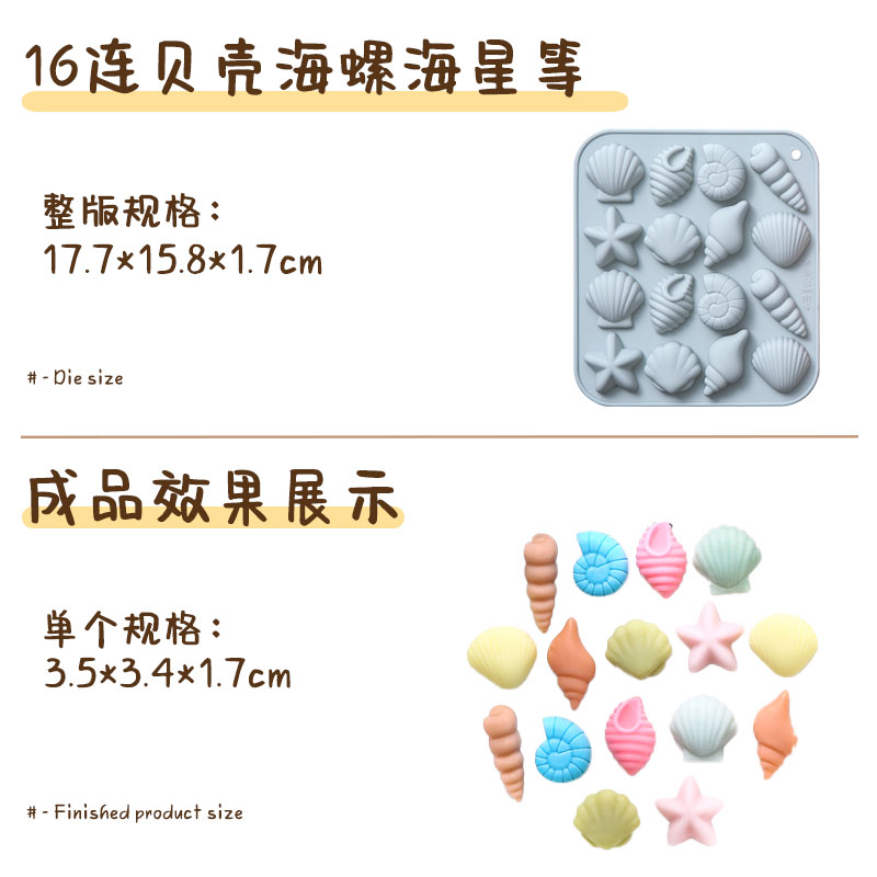 16连贝壳海螺海星硅胶制冰格冰块巧克力糖果布丁烘焙蛋糕模食品级