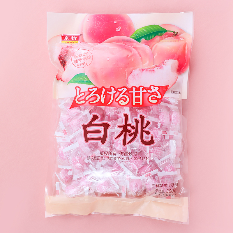 京特白桃水果汁硬糖500g约95颗创意结婚庆喜糖果散装零食