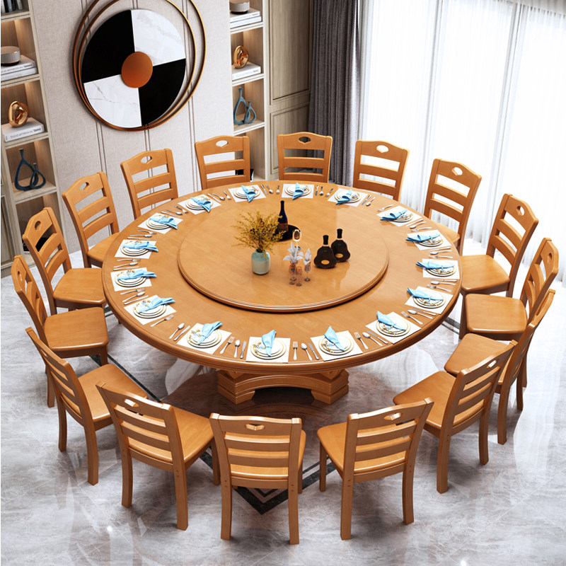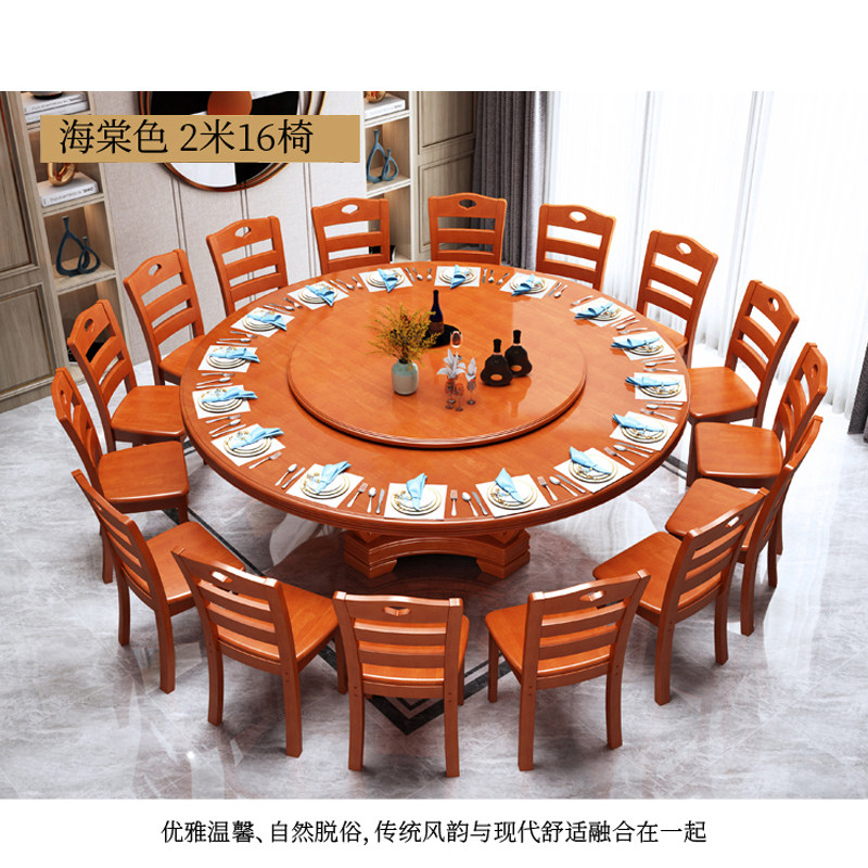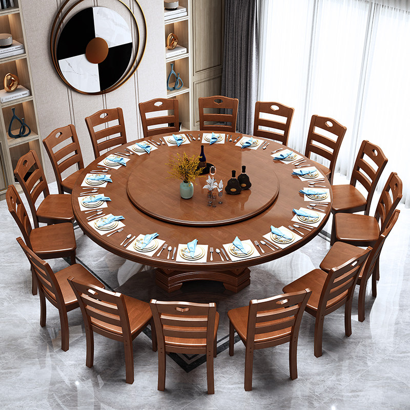 新中式橡胶木实木餐桌家用餐厅圆餐桌大小户型1.3米2米成套家具