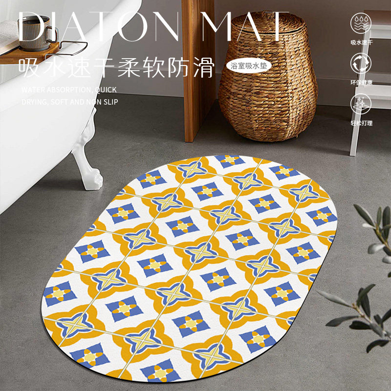 花砖浴室地垫软硅藻泥吸水卫生间厕所防滑脚垫门垫台面沥水垫定制