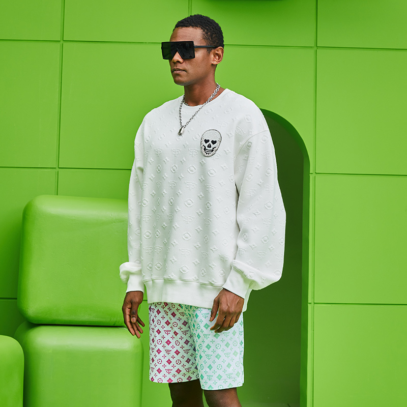 TCH 轻奢潮牌卫衣套头烫钻新款个性宽松圆领上衣T69B116012