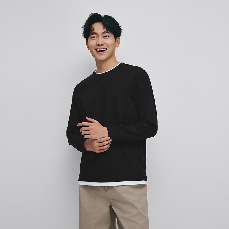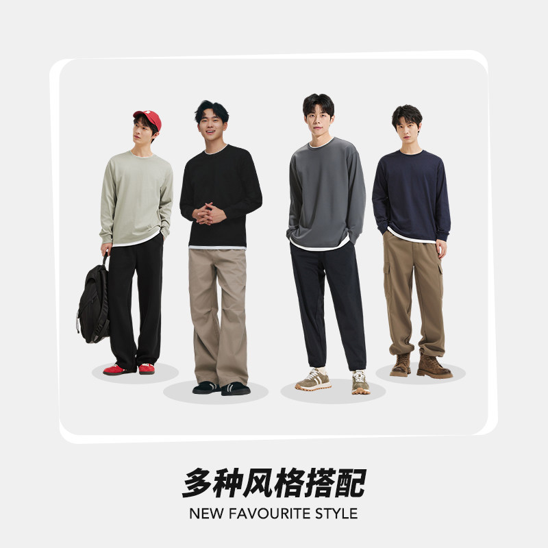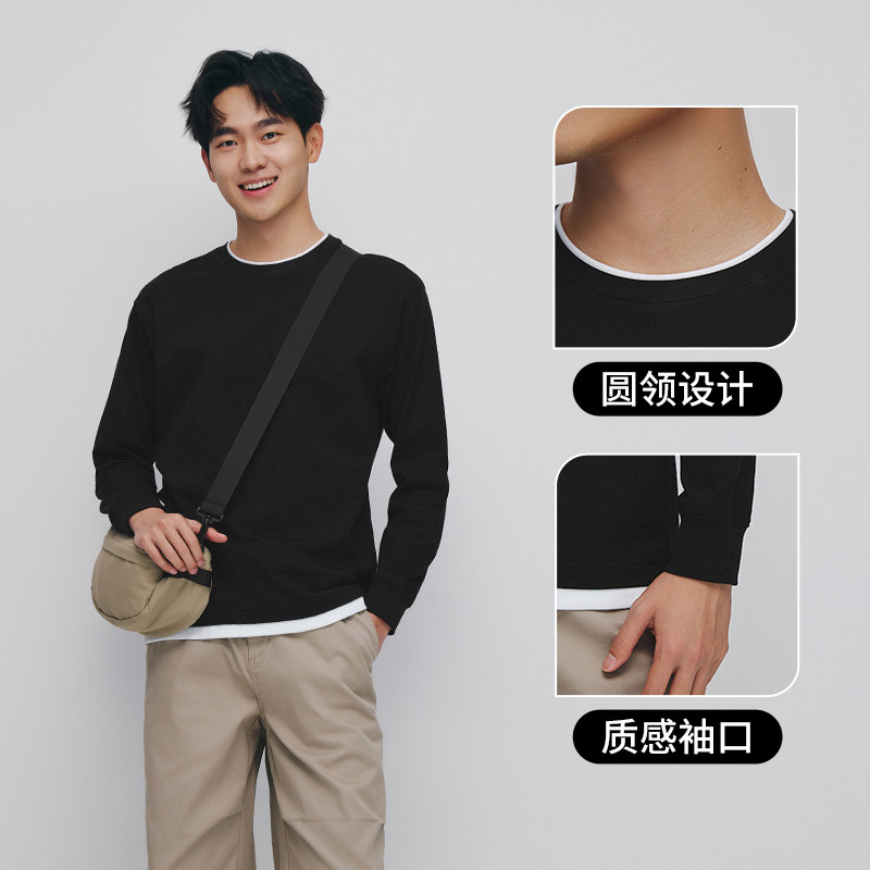 热风男士长袖T恤上衣2025年秋季新款拼接韩系基本内搭打底衫上衣