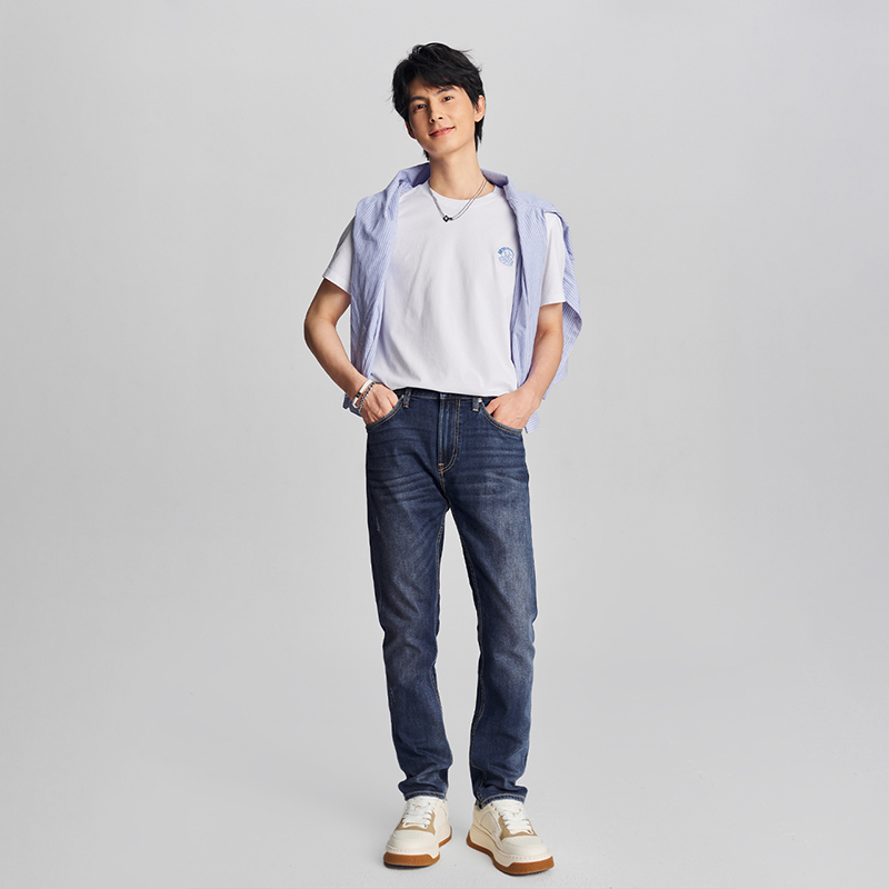 【张凌赫代言】Lee商场同款709修身锥形中蓝色男牛仔裤休闲潮流