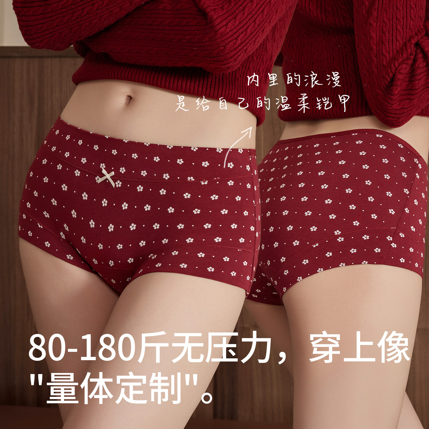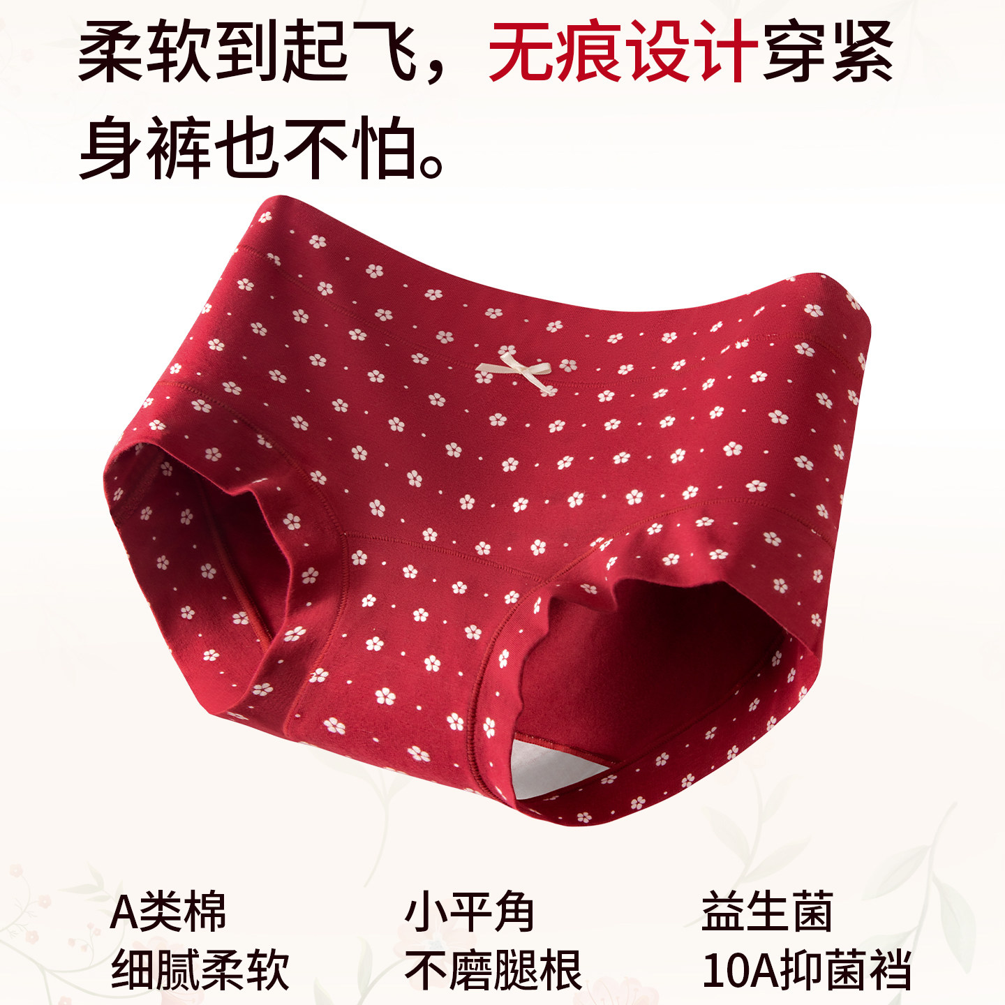 猫人女士纯棉抗菌大码平角内裤