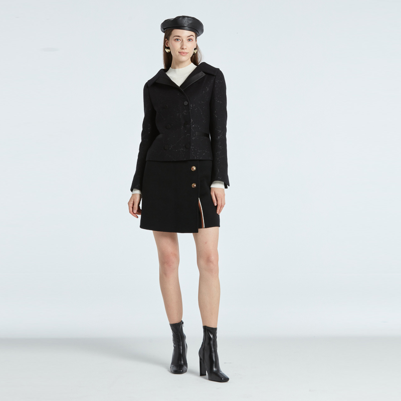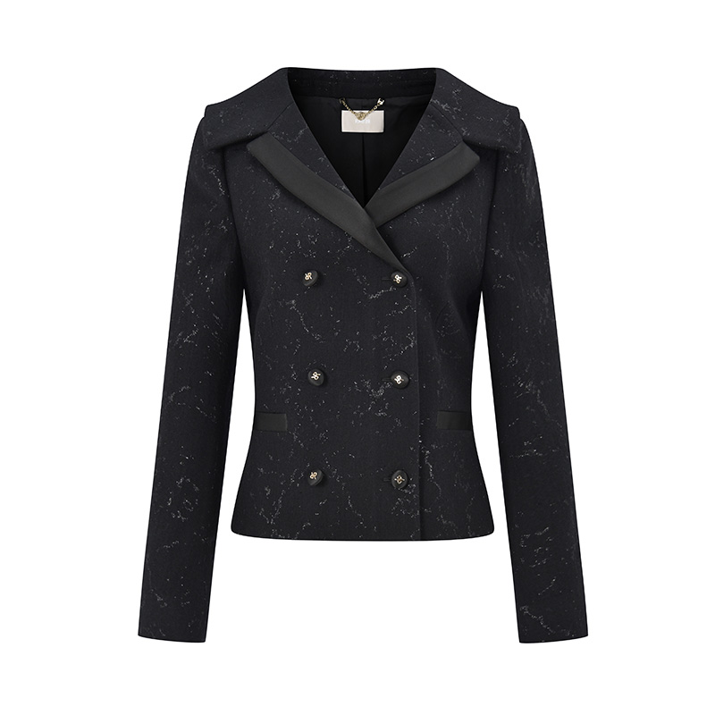 RARE威雅 秋冬女款黑色V领修身百搭款西服外套 RR2236160250