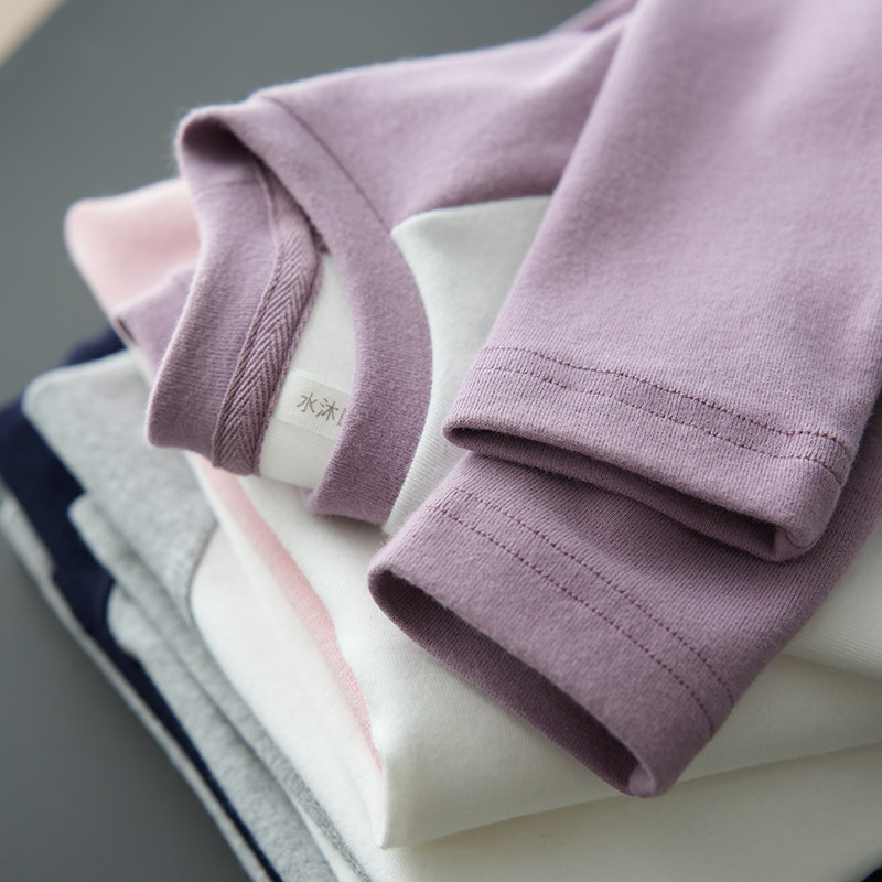 纯棉磨毛长袖T恤衫水沐良品圆领