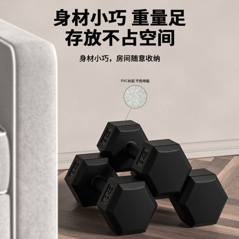 六角哑铃男士家用健身器材包胶固定亚铃女练臂肌宿舍学生壶铃套装