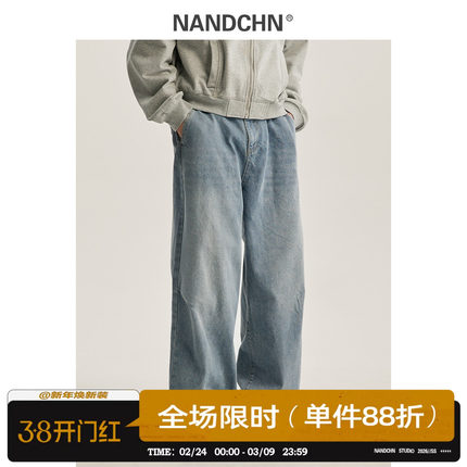 男道美式复古水洗直筒牛仔裤男士夏季宽松百搭阔腿拖地长裤子潮牌