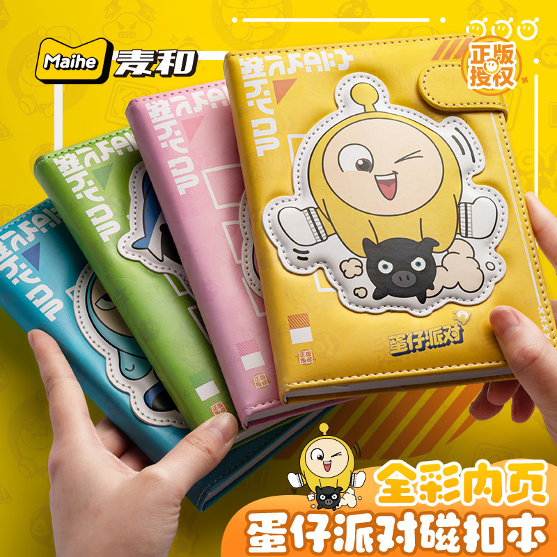 正版蛋仔派对磁扣本高颜值手账本女生可爱高颜值磁吸日记本子记事简约小学生用卡通新款手杖本彩页记事本联名