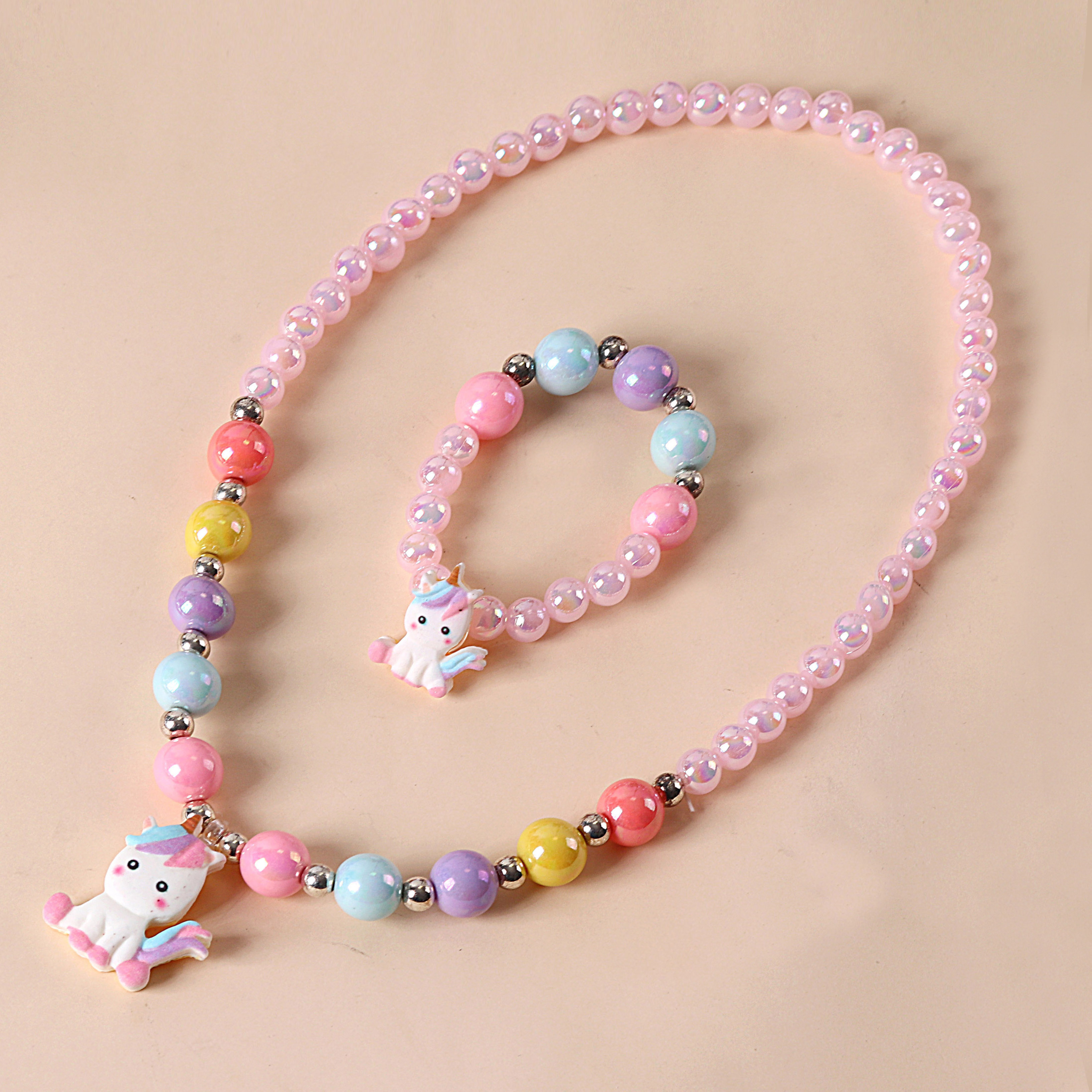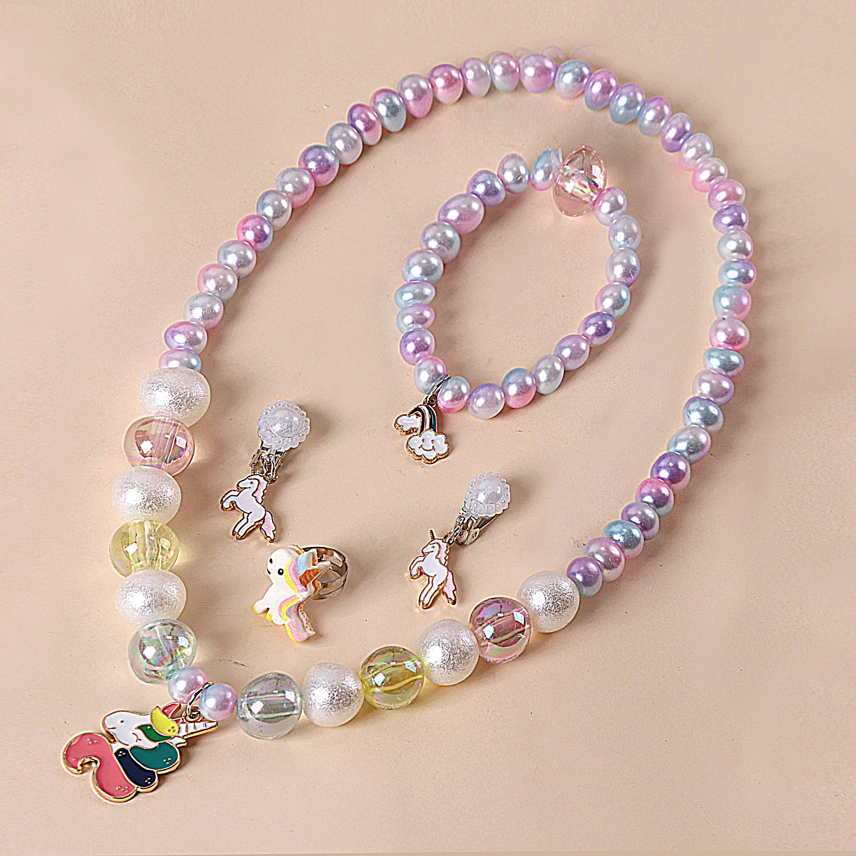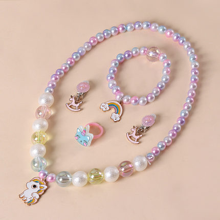 儿童项链手链耳夹套装小公主独角兽戒指女童宝宝配饰2023年新款