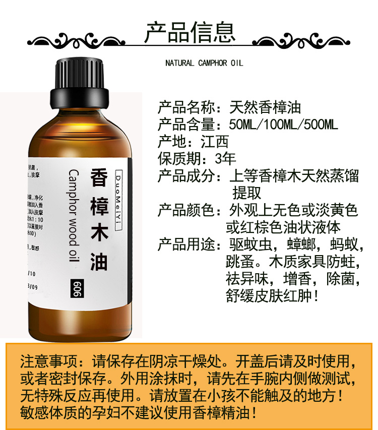 天然樟脑纯精油香樟木油消毒杀菌止痒木家具防霉防蛀驱虫蟑螂跳蚤