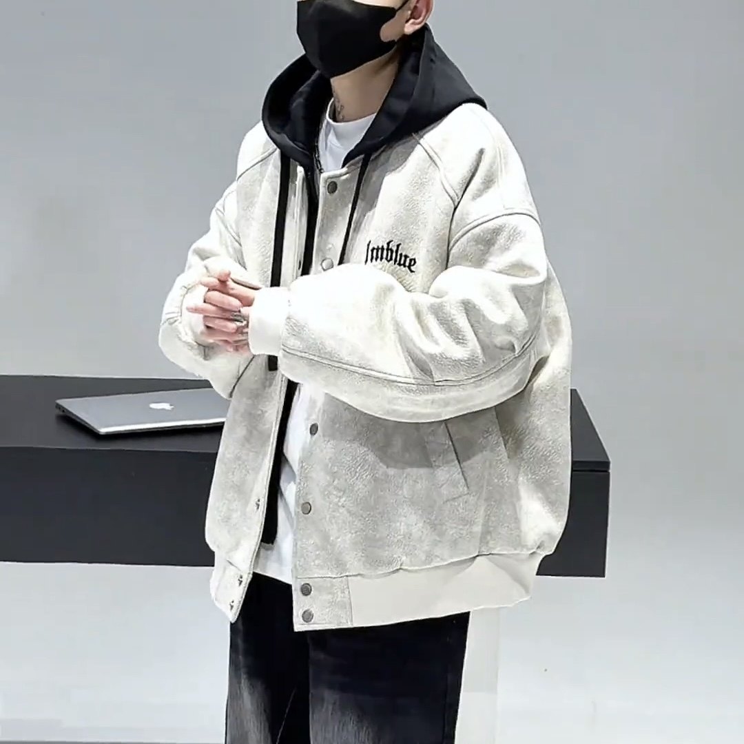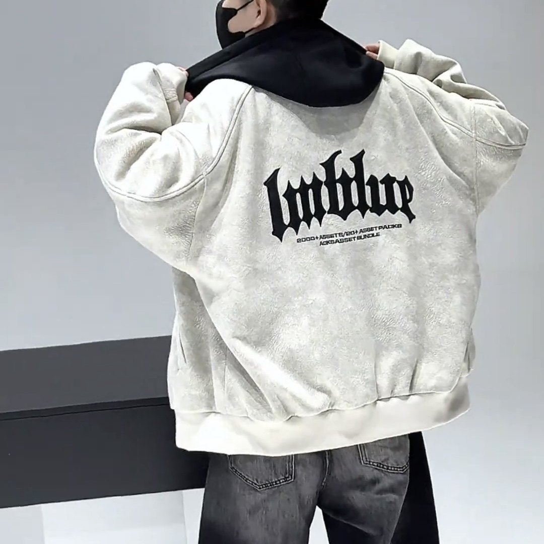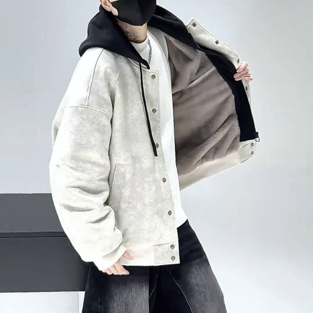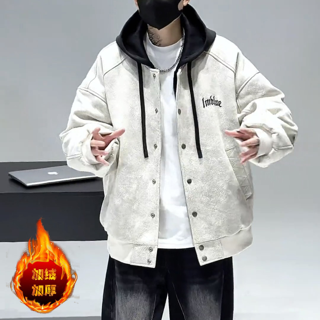 冬季新款连帽不可拆夹克加绒加厚棒球服青少年学生宽松外套潮9808