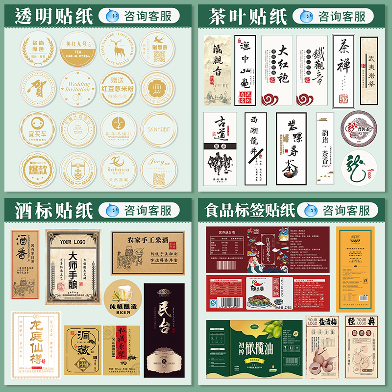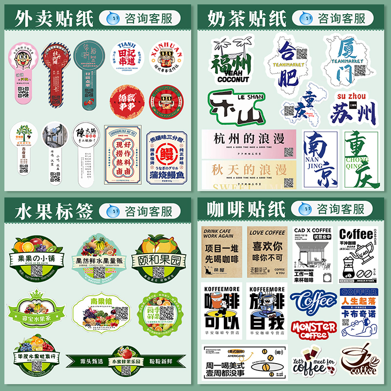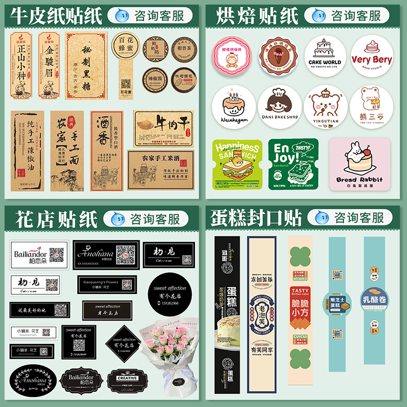 贴纸定制不干胶logo二维码透明pvc商标定做烘焙奶茶广告标签订制