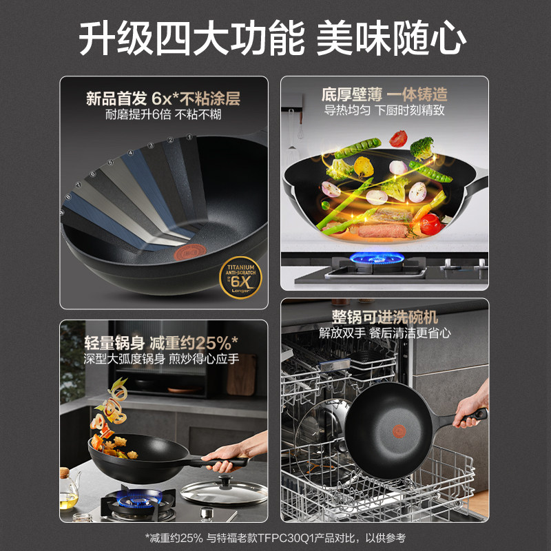 Tefal/特福炒锅不粘锅家用炒菜锅平底煎锅电磁炉专用锅燃气灶有钛