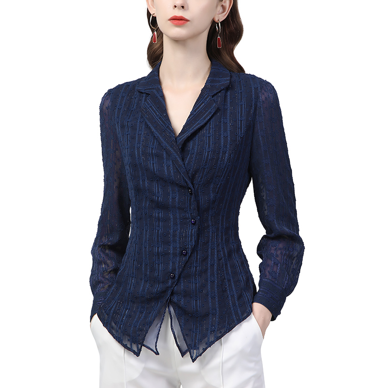 西装领长袖衬衫女收腰显瘦设计感衬衣上衣2025秋季职业雪纺衫小衫