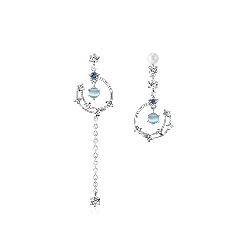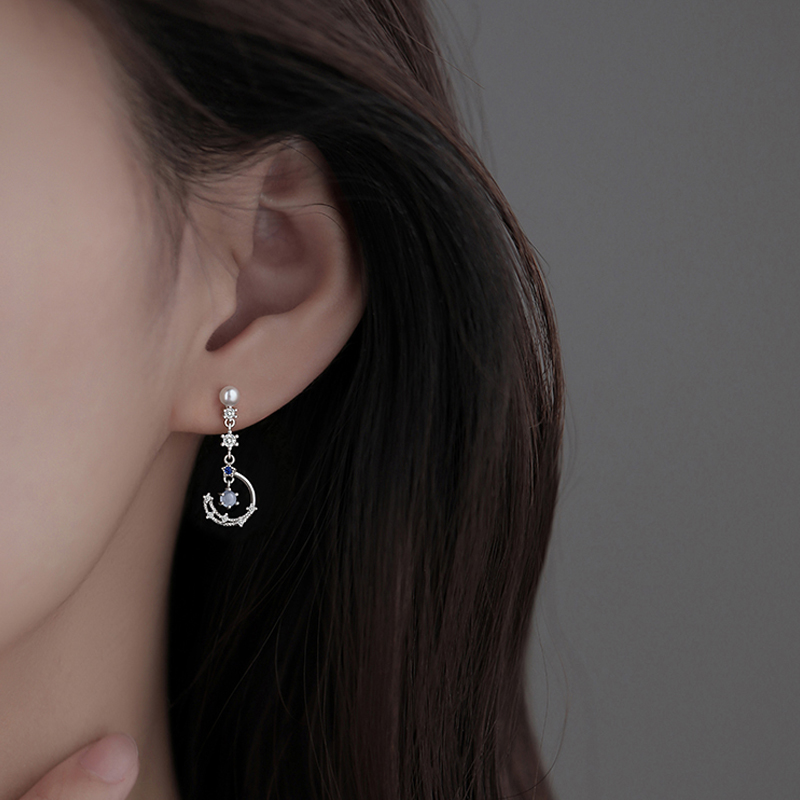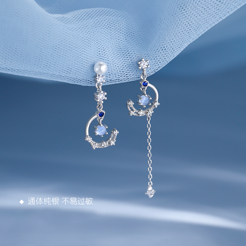 s925银不对称月亮耳钉2023年新款潮养耳洞耳环女小巧气质级感耳饰