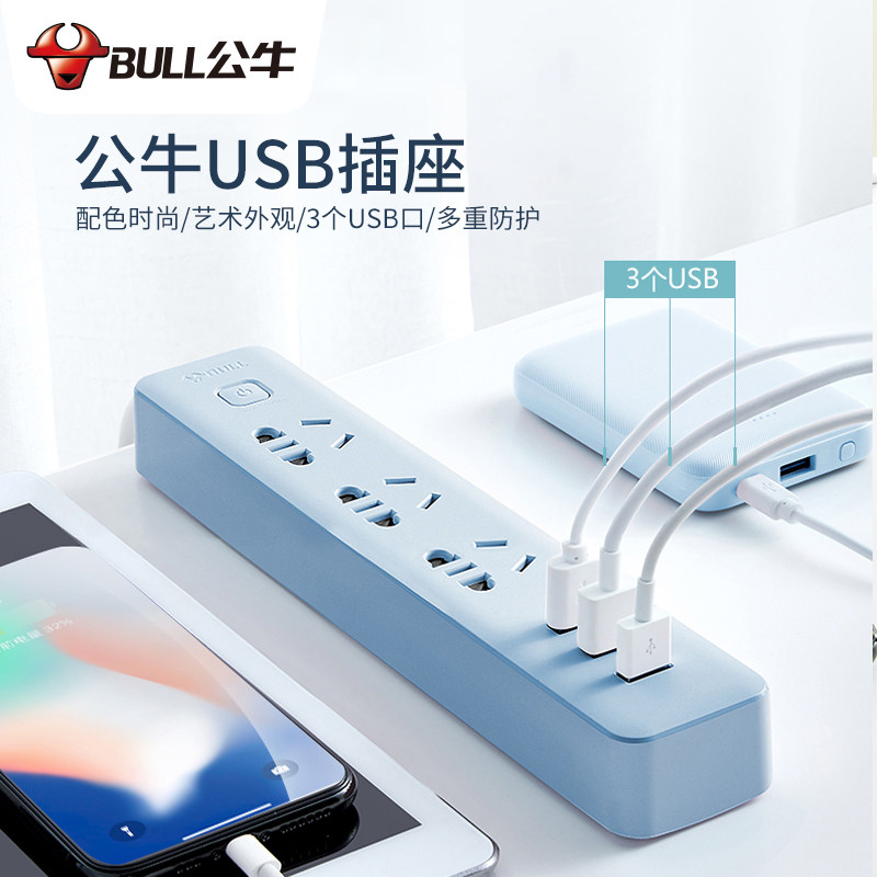 公牛usb多孔插线板带线PD插座拓展拖线板桌面排插大学生宿舍插板