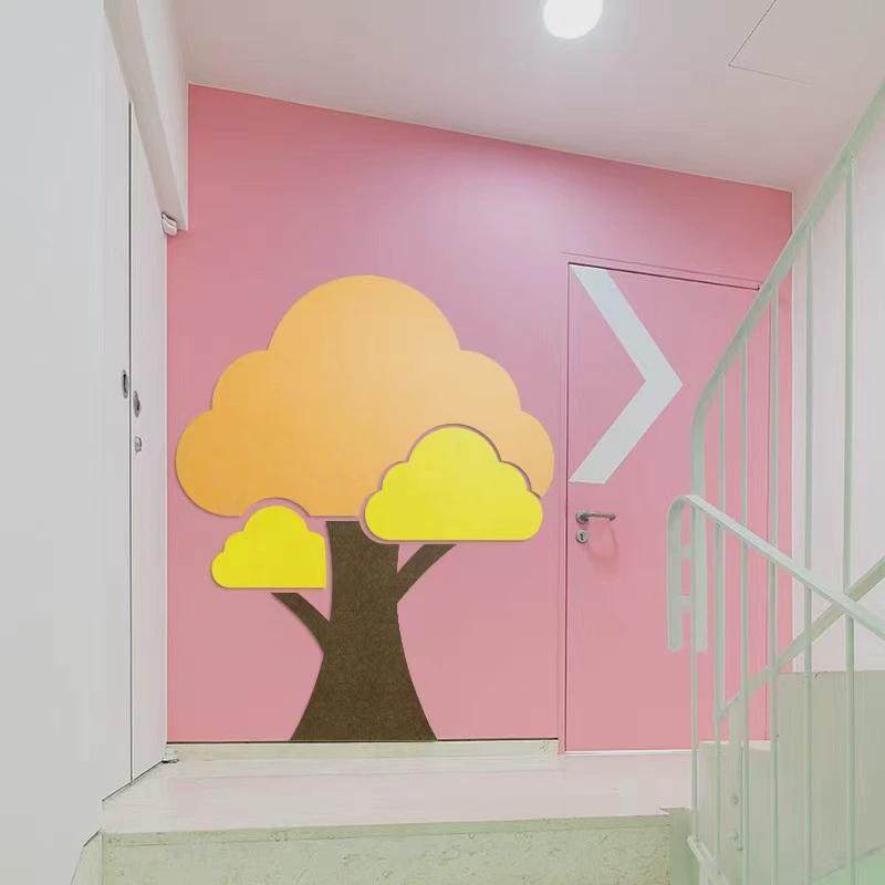 幼儿园学校教室走廊墙面大树冠造型自粘功能性墙贴毛毡板照片扎板