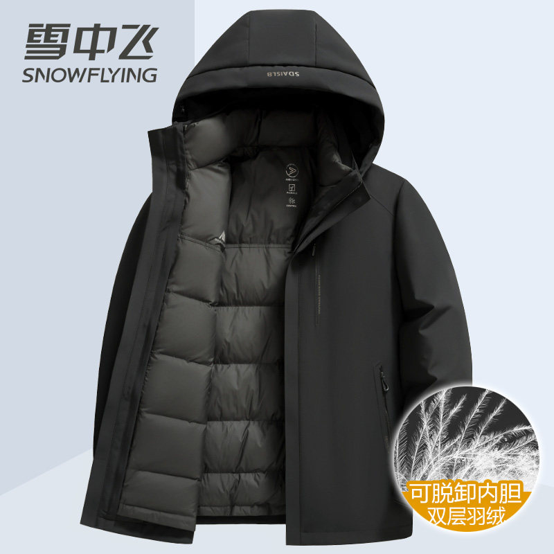 雪中飞连帽内胆可脱卸羽绒服男双层充绒一衣三穿加厚保暖冬季外套