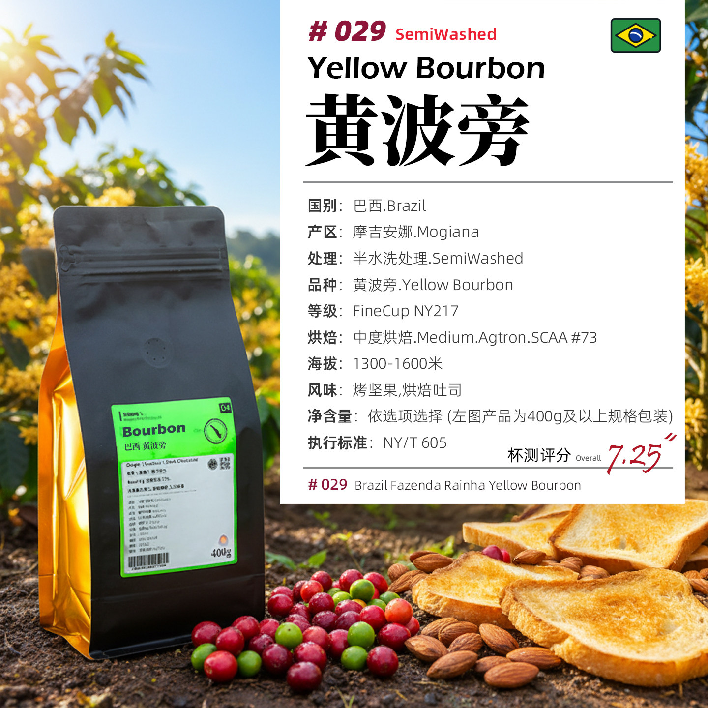 巴西·皇后庄园·黄波旁·半水洗处理·中烘 庄园级手冲咖啡豆