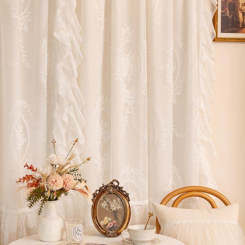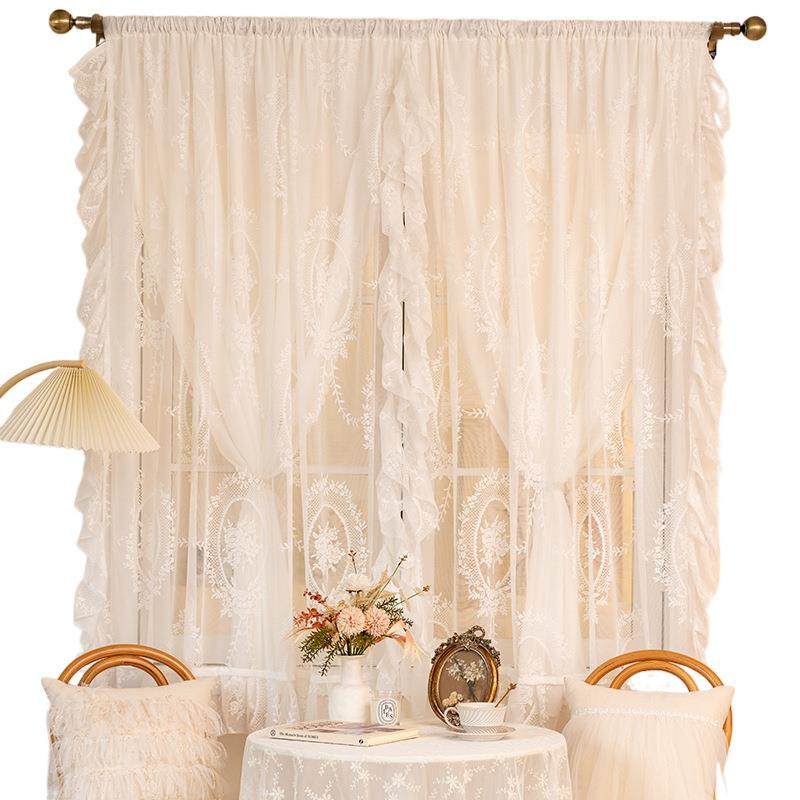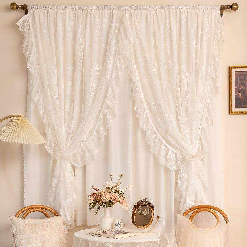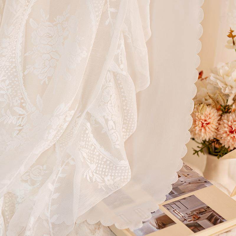 法白色丝窗帘公主式风双层纱帘蕾光不透人梦透幻少女卧室飘520窗