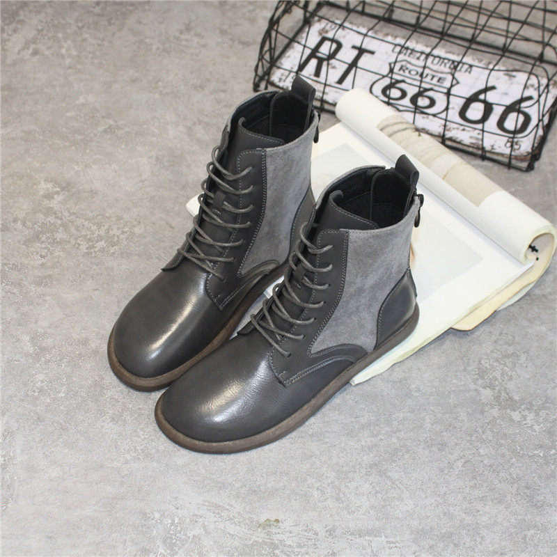 森系复古系带马丁靴女韩版百搭平底加绒短靴秋冬新款圆头学生靴子