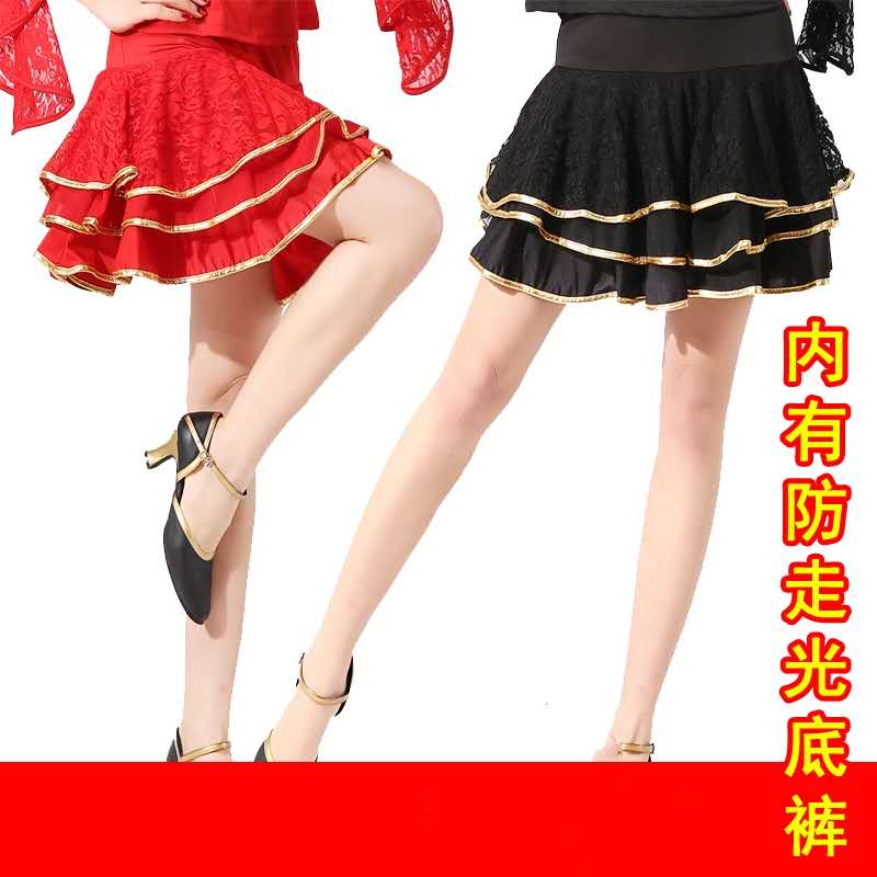 新款夏秋广场舞服装短裙子拉丁舞练习裙半身裙亮片舞蹈练功裙成人