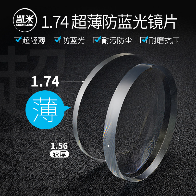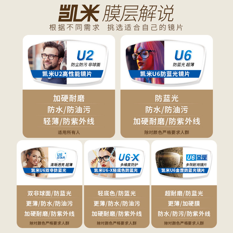 韩国凯米镜片U6X防蓝光金罡1.74超薄U2官方旗舰高度近视1.67配镜