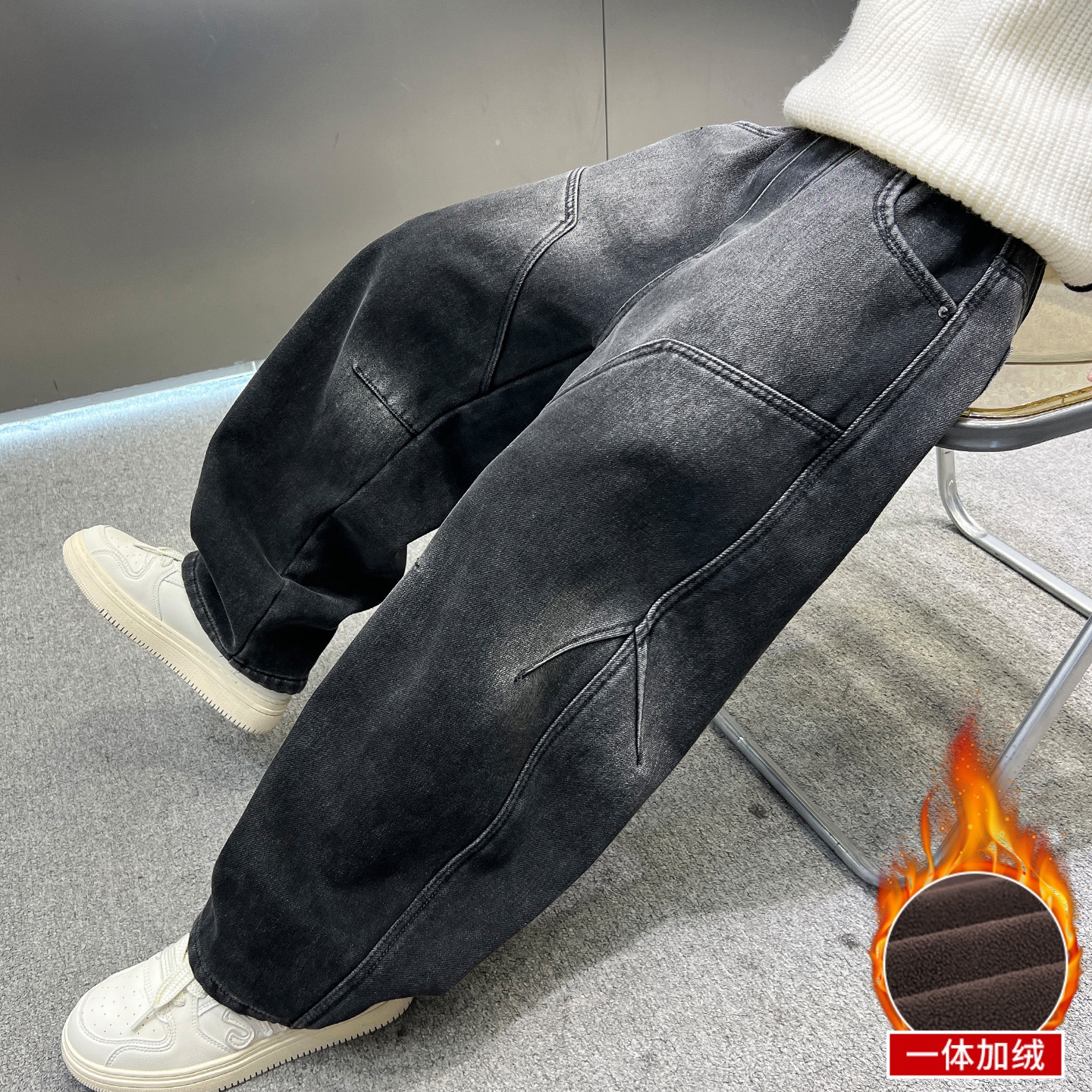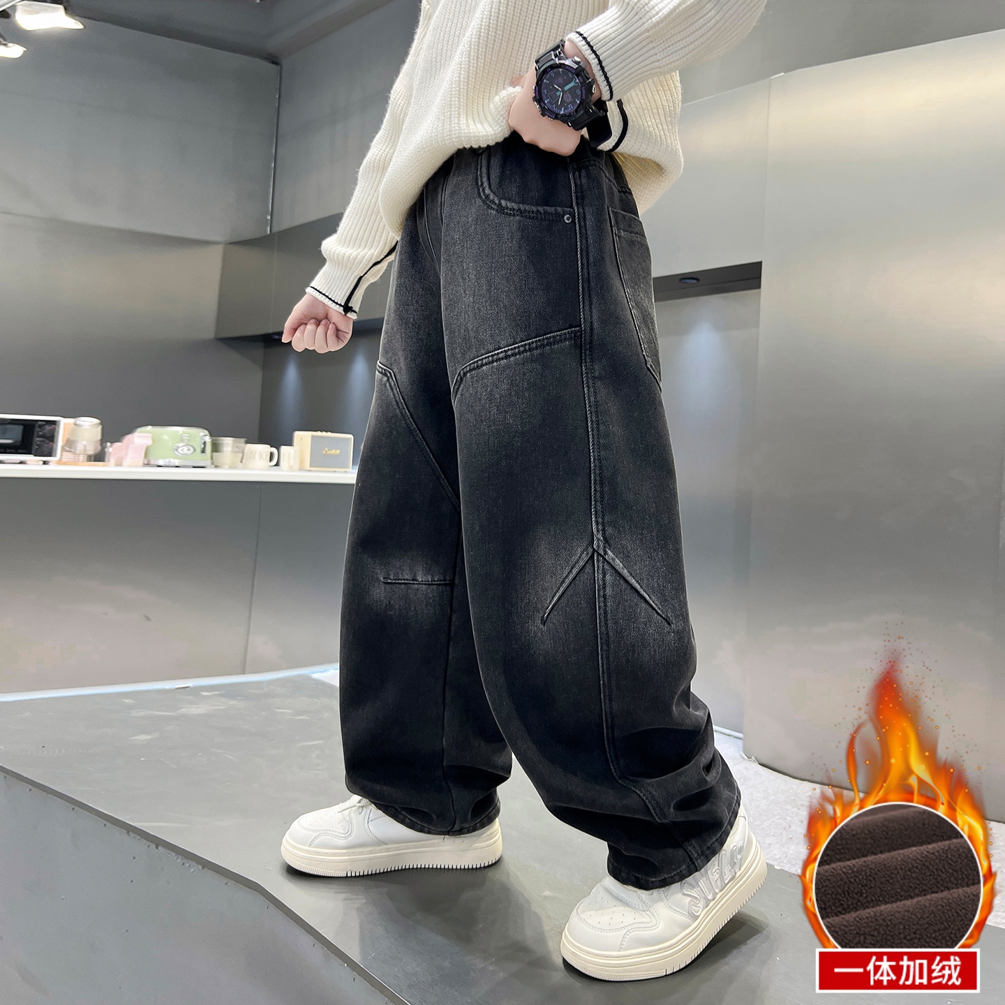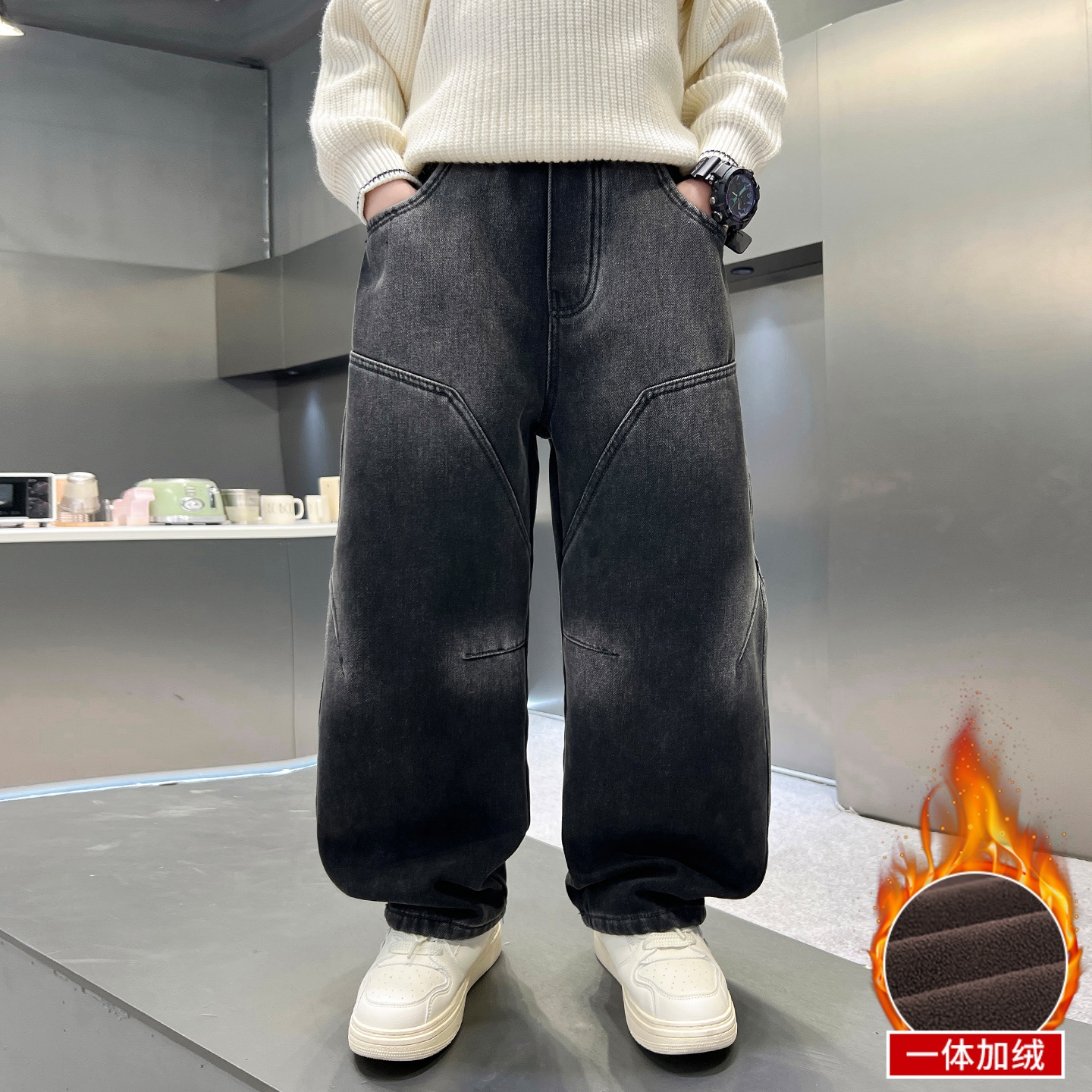【送运费险】男童加绒牛仔裤