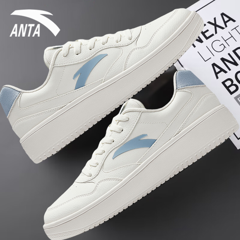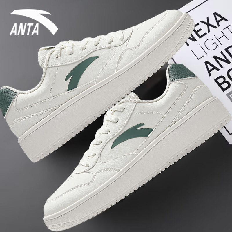安踏板鞋男鞋2025新款秋冬男款厚底休闲滑板鞋小白鞋皮面运动鞋男