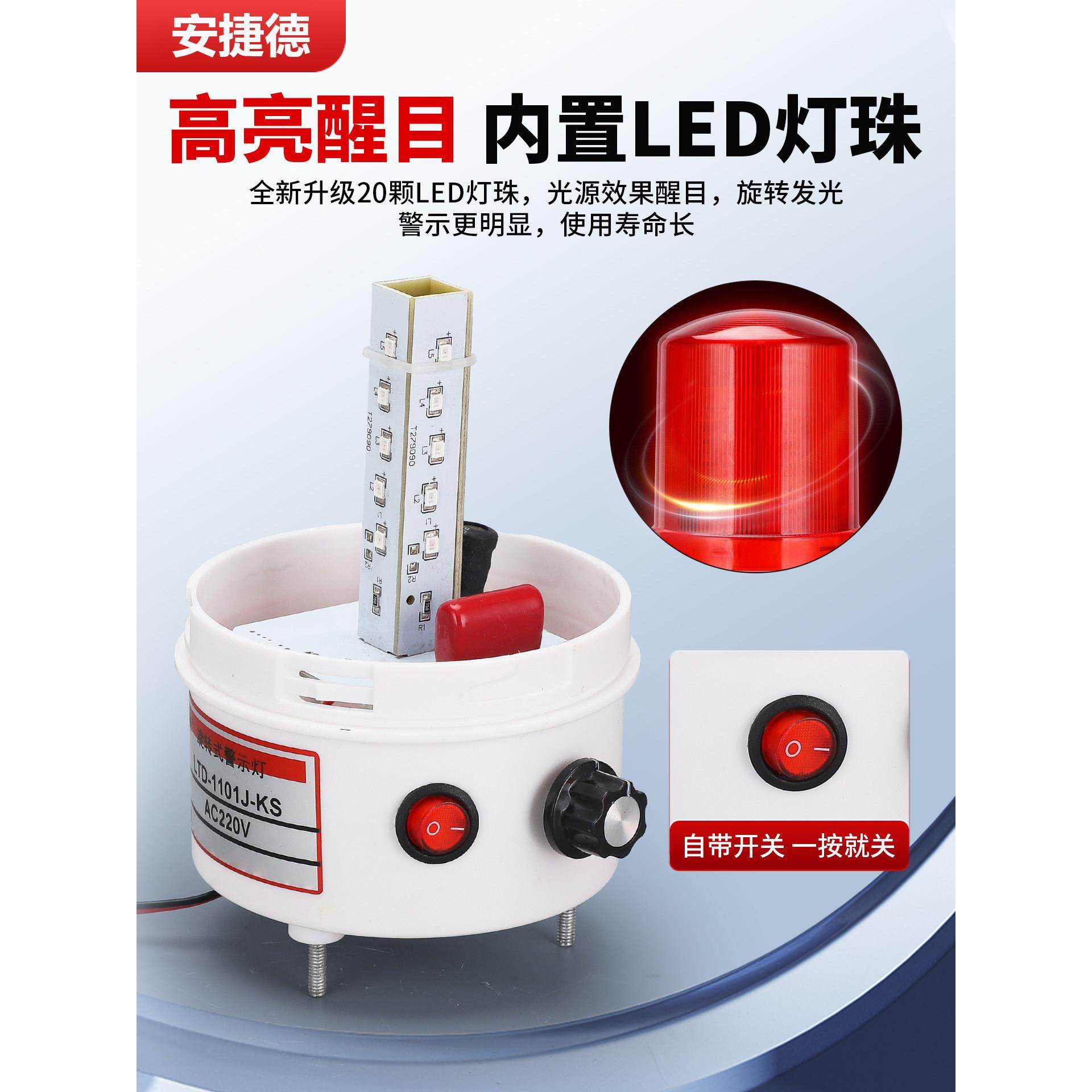 Lte-1101J旋转警灯闪光声光报警音量带开关可调24V 220V 12V