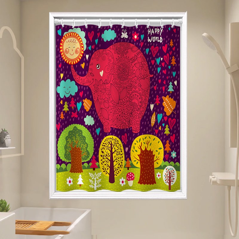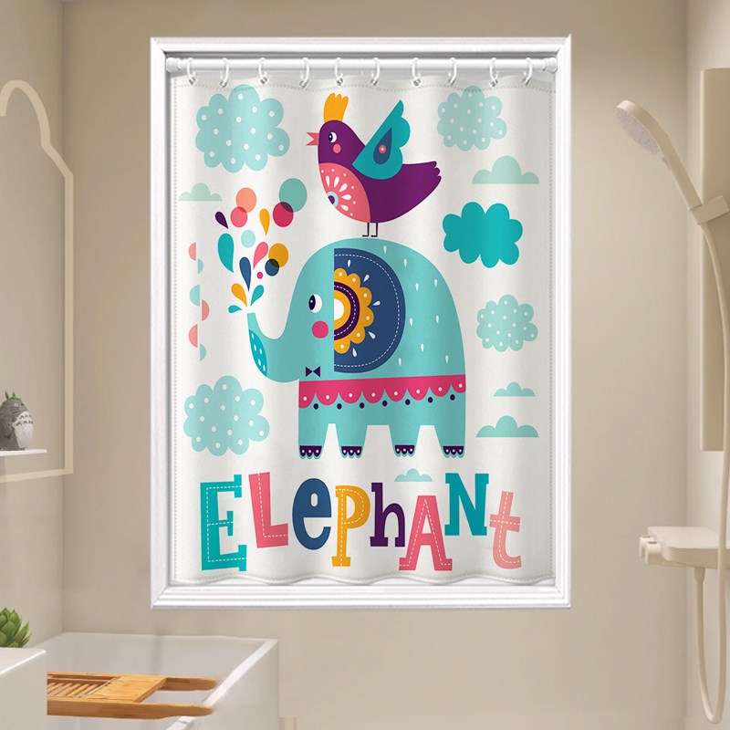 窗帘遮光2024新款免打孔安装卫生间遮挡帘浴室防水卡通遮阳厨房短