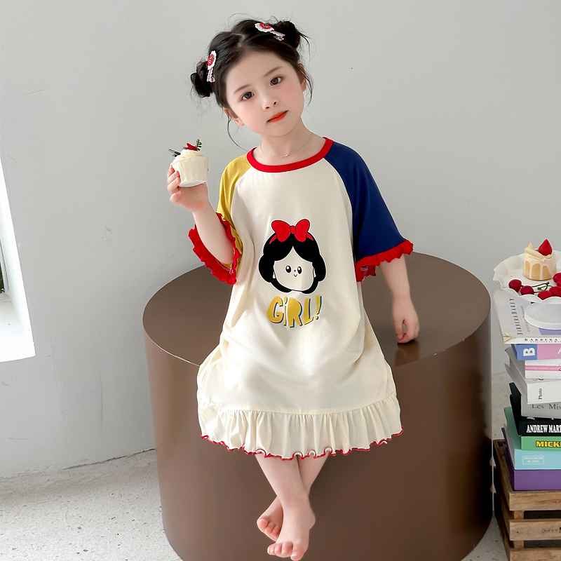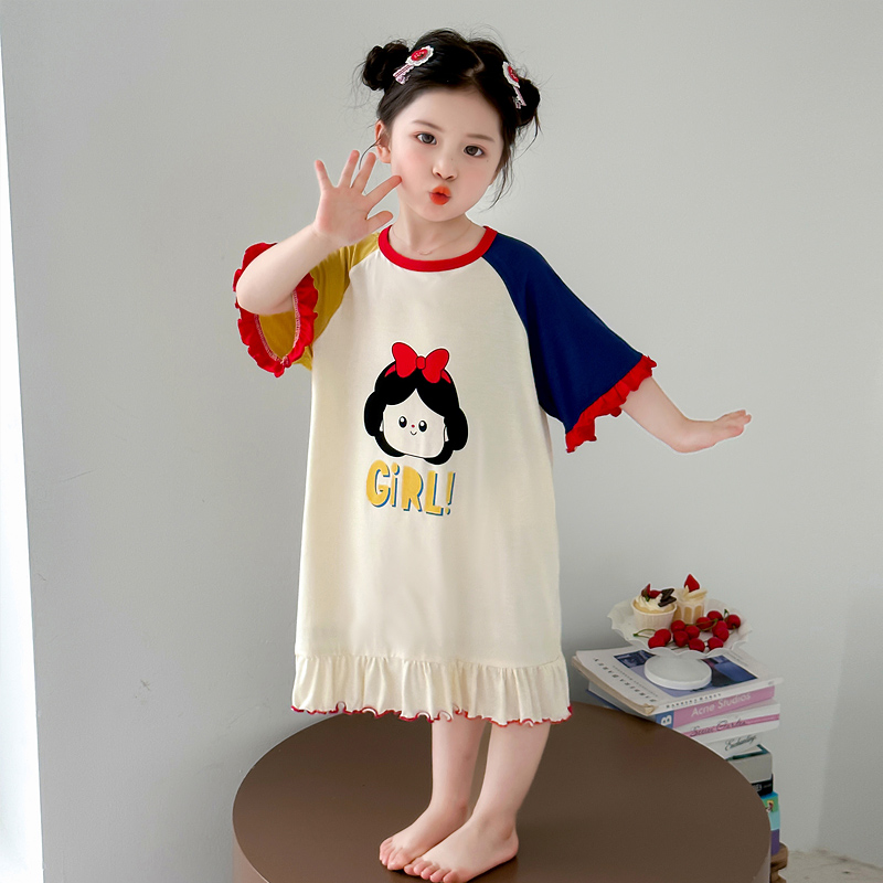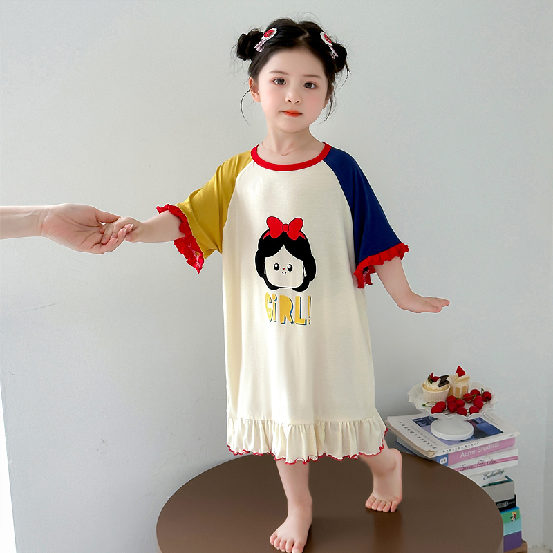 女童睡裙夏季2025新款莫代尔儿童睡衣短袖薄款女孩宝宝卡通家居裙