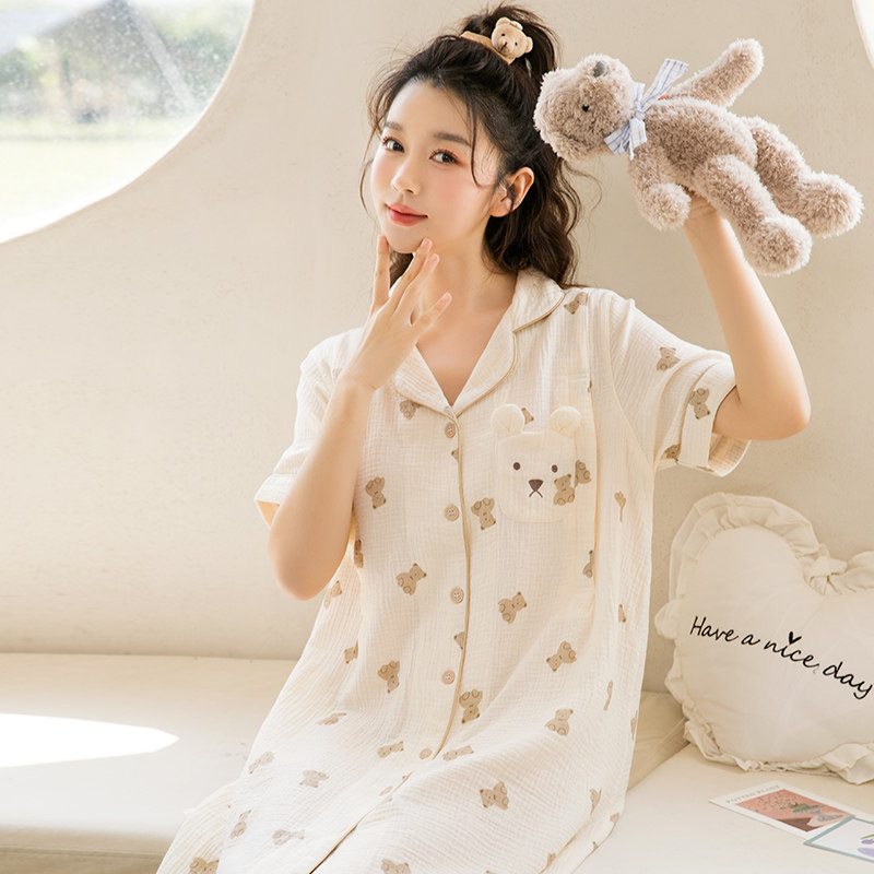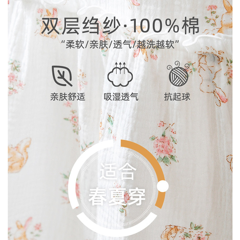 家时光产妇医院待产裙夏季纯棉纱布短袖哺乳睡裙孕妇月子服生产裙
