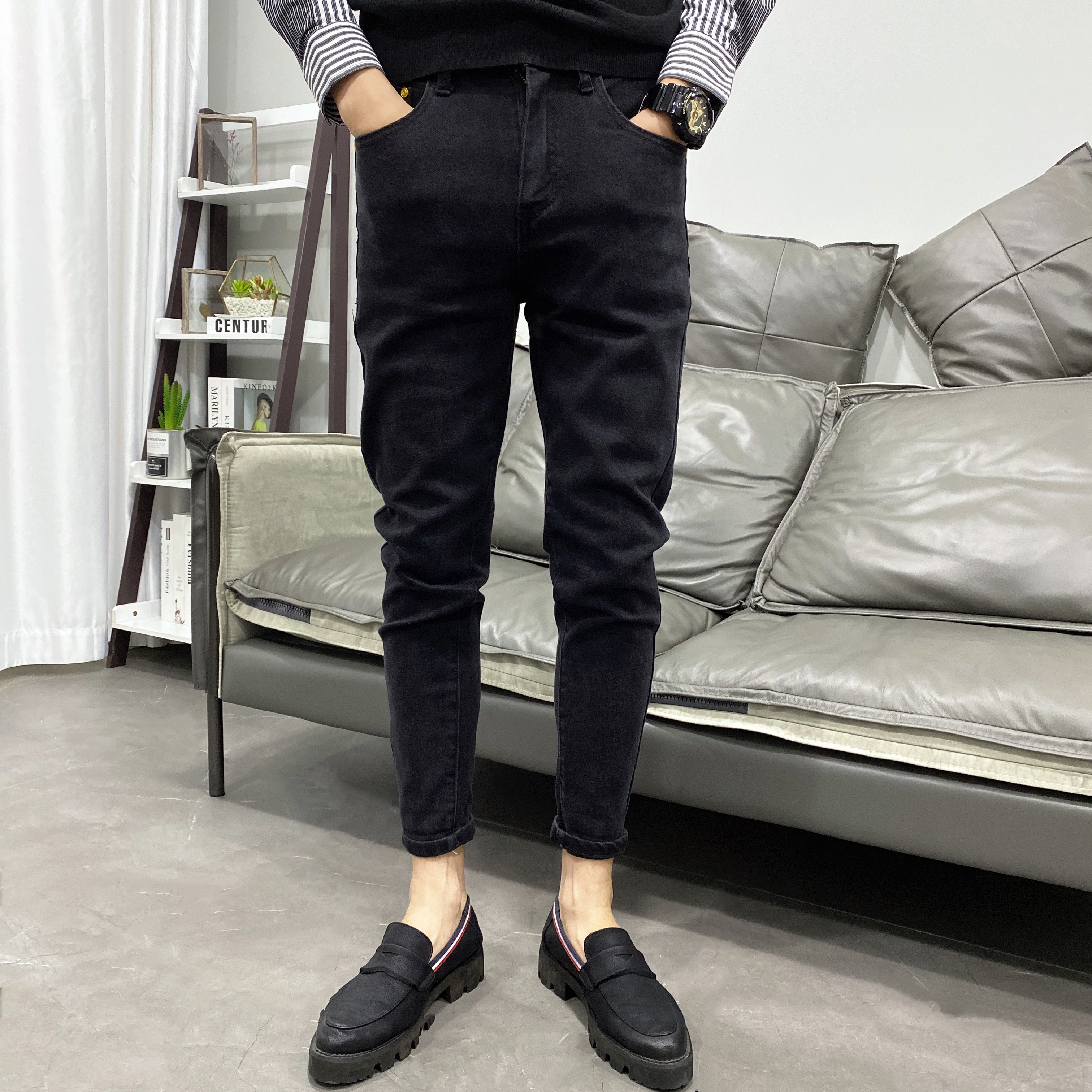 金属微跨秋冬弹力显瘦牛仔长裤男