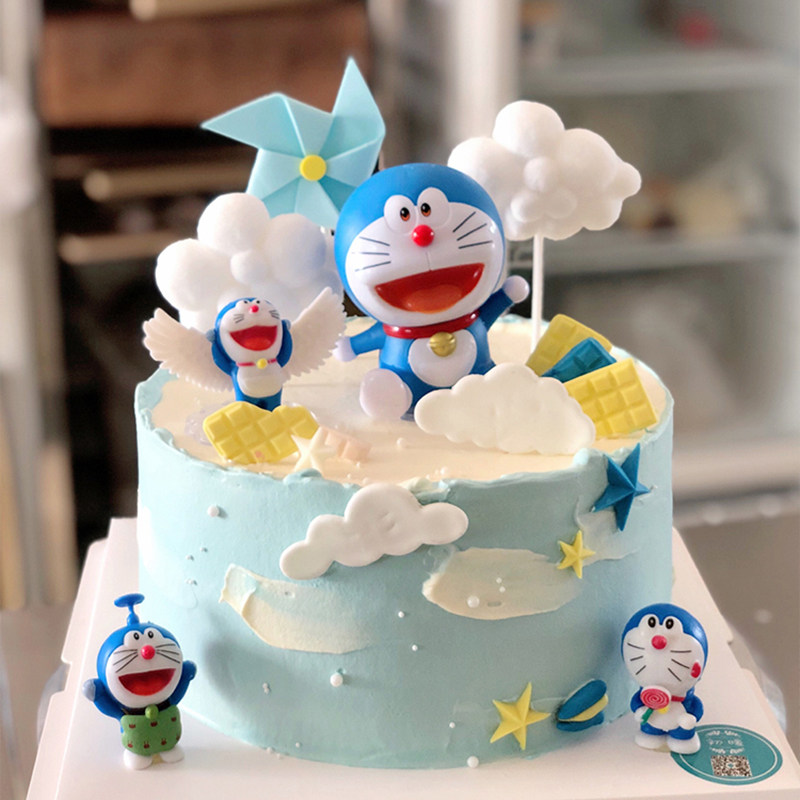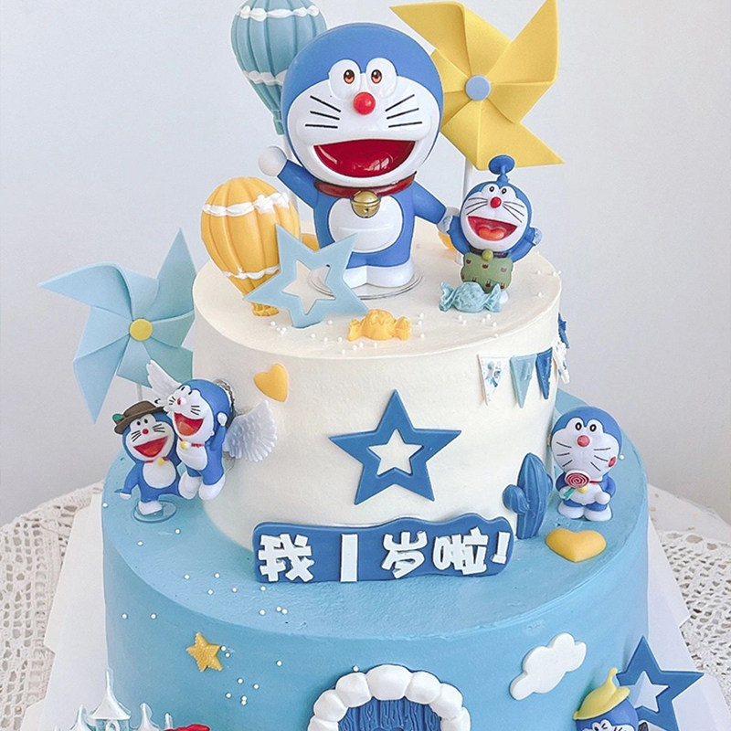 哆啦A梦蓝胖子蛋糕装饰摆件叮当猫机器猫蓝色小猫儿童生日插配件l