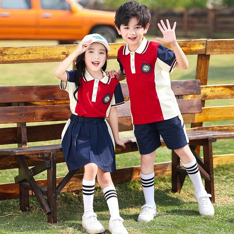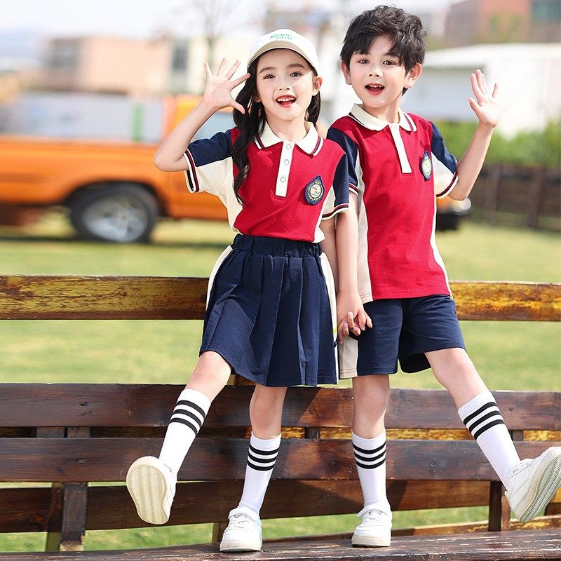 小学生校服酒红色夏季运动套装幼儿园毕业照班服夏季款英伦风园服