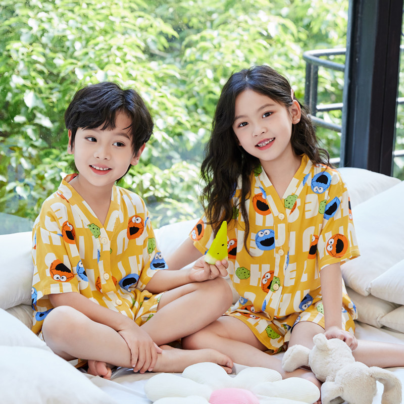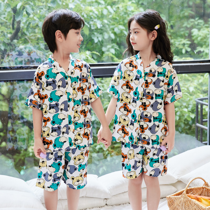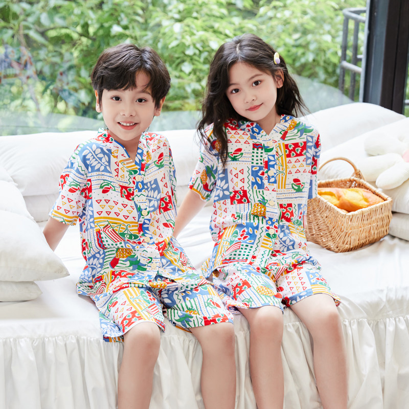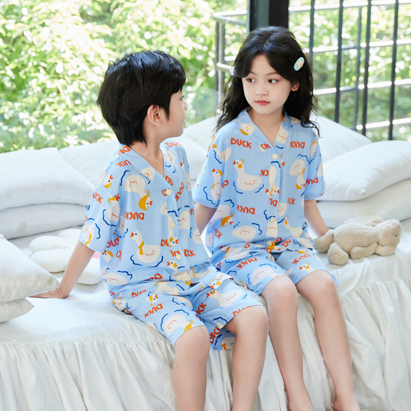 夏季薄款儿童棉绸睡衣短袖短裤家居服套装宝宝男童女童中大童