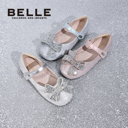 百丽女童蝴蝶结闪钻软底公主鞋