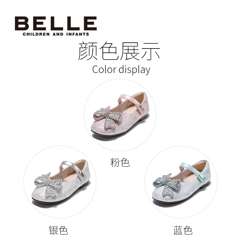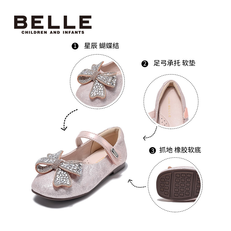 百丽童鞋甜美风蝴蝶结公主鞋小女孩闪钻时尚水晶鞋百搭软底演出鞋