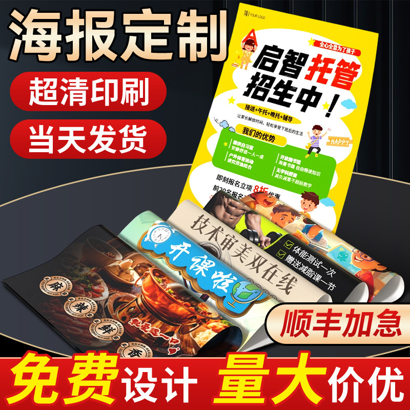 广告海报定制贴纸打印墙贴设计制作印刷开业展会户外宣传招聘写真
