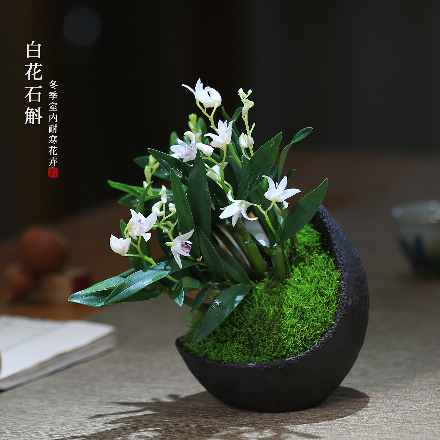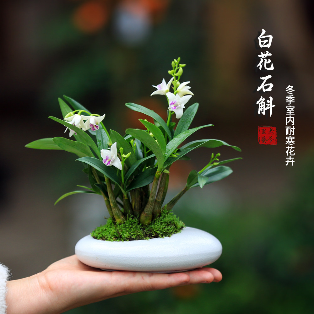 白花石斛兰盆栽带盆室内耐寒花卉绿植小盆栽装饰带花苞香水石斛兰